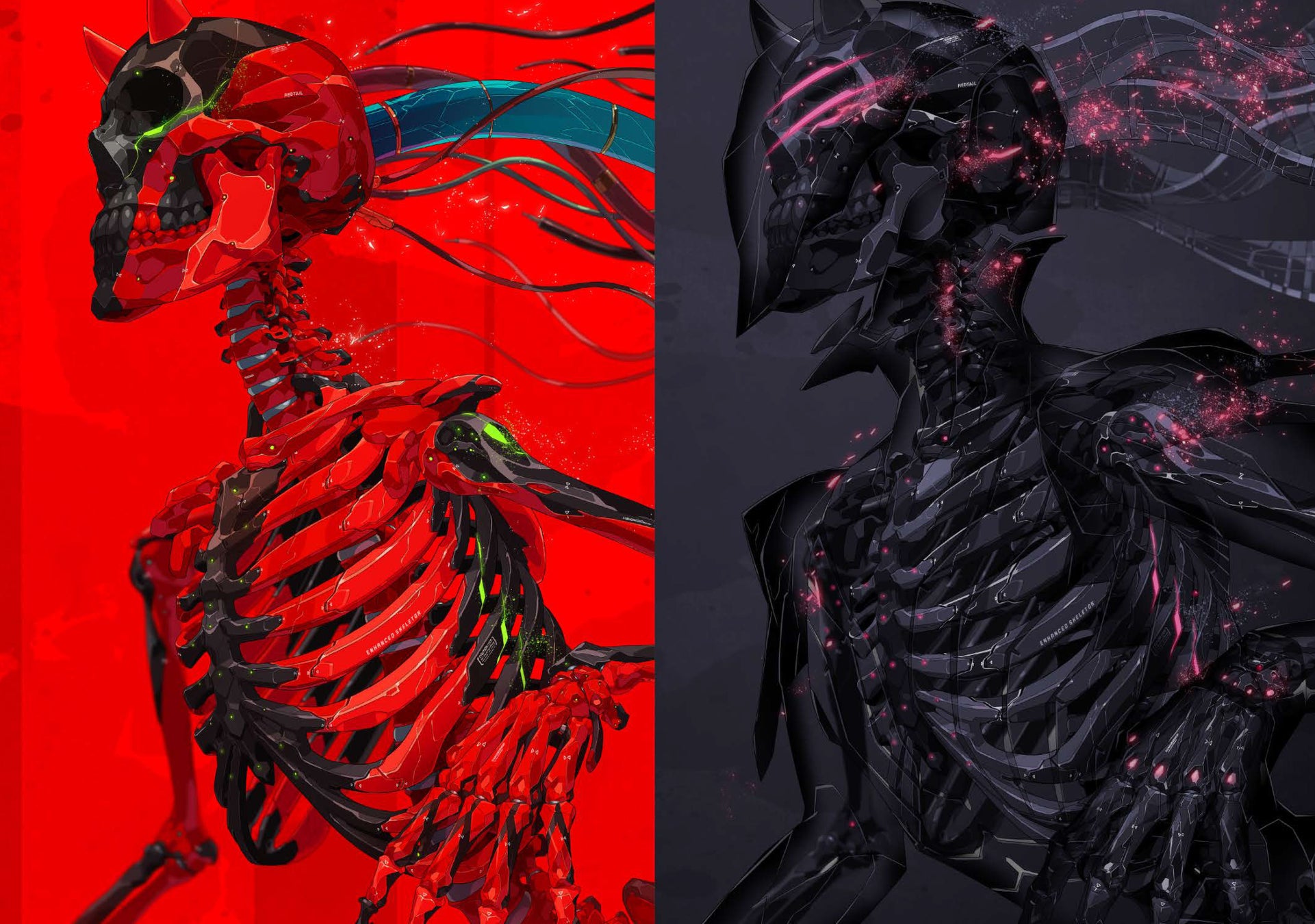 この作品集では、SNSで話題となった「強化骨格」シリーズも収録し、そのプロジェクトの全貌と細部まで大公開。紙の本ならではの迫力と質感が楽しめます。