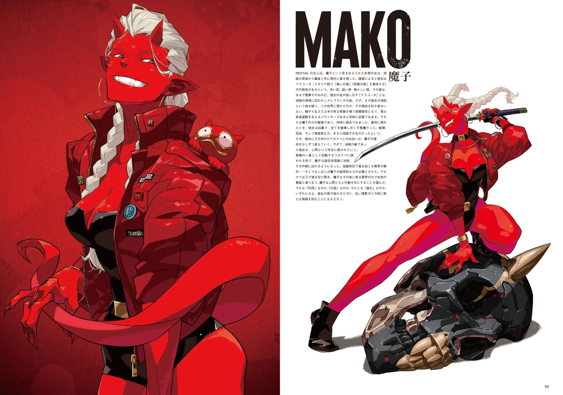 イラストのほか、キャラクター紹介、スケッチ、小説、漫画など、多彩な表現を駆使して「REDTAIL」の世界観をこの一冊に完全構築しました。