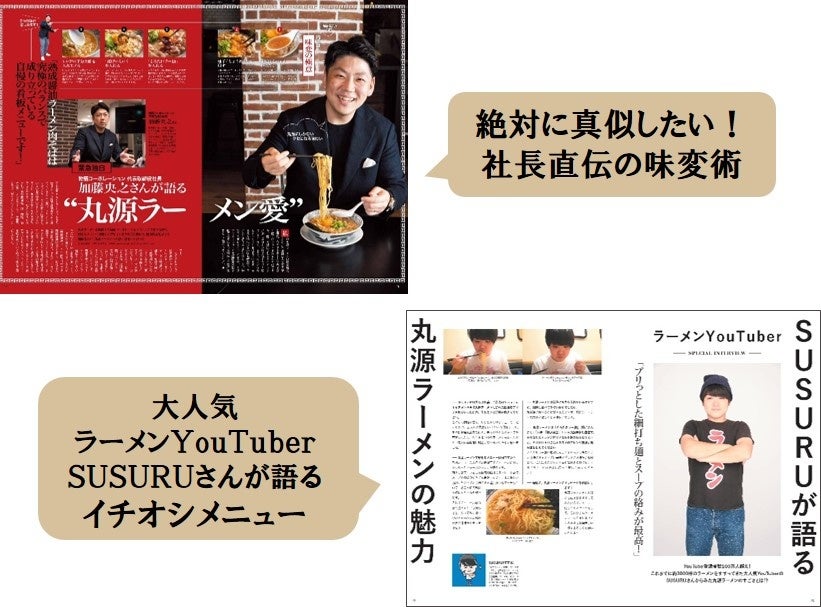 各チェーンのファンに楽しんでもらえるのはもちろん、社長インタビューをはじめ、歴史、商品開発秘話、そのチェーンのファンであるタレントのインタビュー なども掲載しています。そのため、コラボした各企業からは「新入社員から全国各店舗の従業員まで自社事業について理解が深まり、モチベーションアップにつながった」という声を多数いただき、社内報のような形でも活用していただ いています。