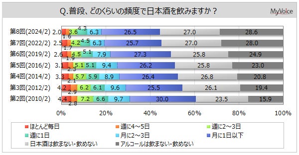 マイボイスコム株式会社(東京都千代田区、代表取締役社長:高井和久)は、8回目となる『日本酒』に関するインターネット調査を2024年2月1日~5日に実施しました。