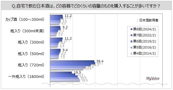「一升瓶入り(1800ml)」は19.5%、過去調査と比べて減少傾向です。