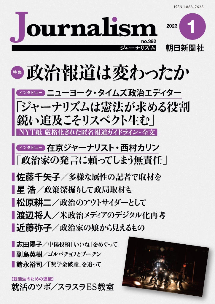 株式会社朝日新聞社(代表取締役社長:中村史郎)は1月10日(火)、「月刊Journalism」1月号を発行しました。特集は、「政治報道は変わったか」です。