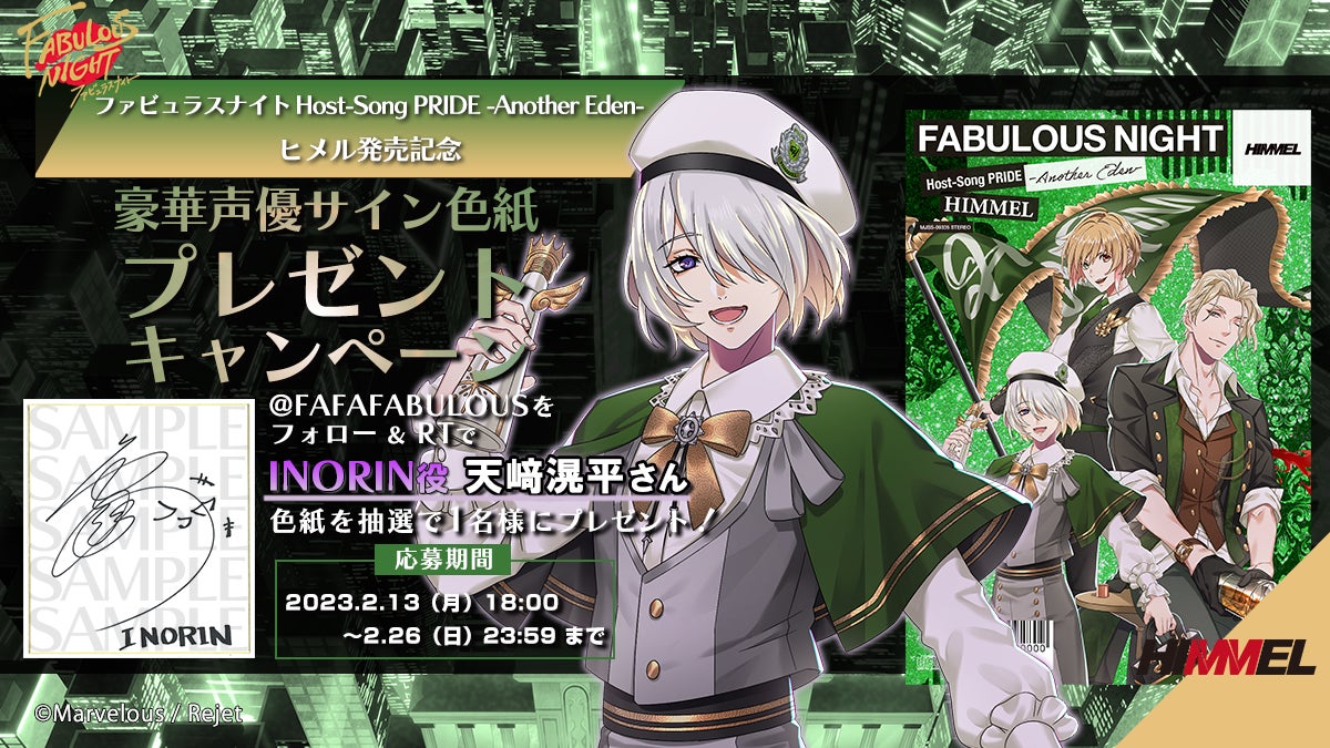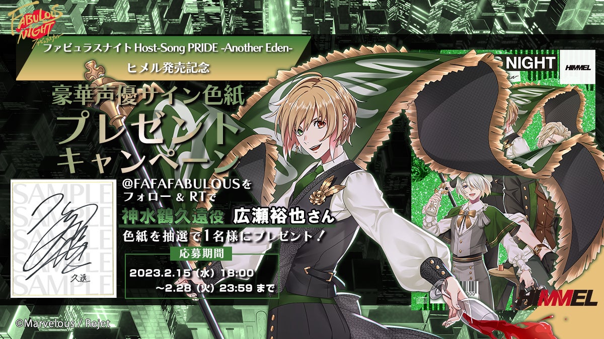 声優直筆サイン色紙プレゼント!CD『ファビュラスナイト』Host-Song PRIDE「ヒメル」発売記念キャンペーン実施中!