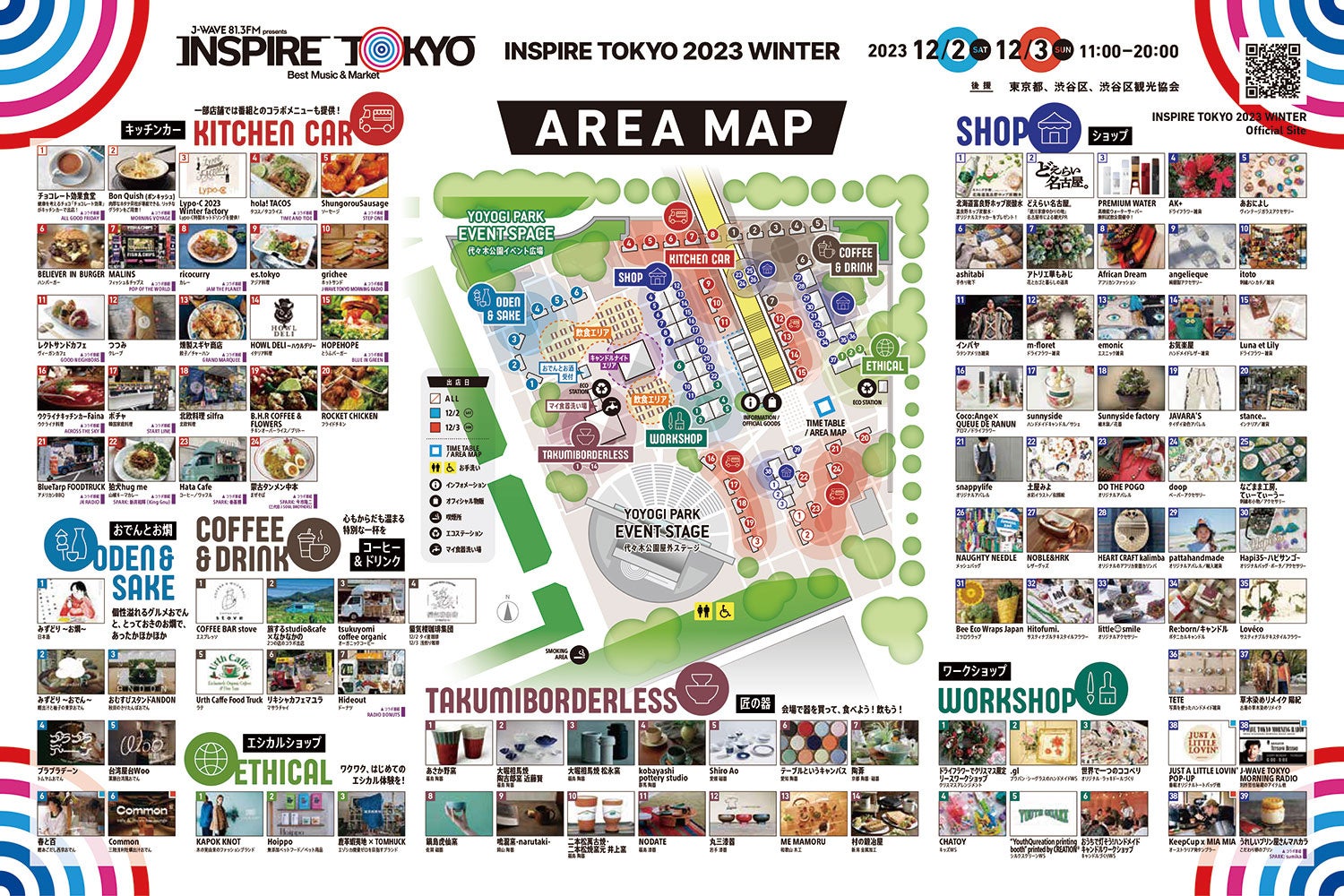 ラジオ局J-WAVE(81.3FM)は、都市型カルチャーフェス「J-WAVE presents INSPIRE TOKYO 2023 WINTER -Best Music & Market-」(以下、INSPIRE TOKYO WINTER)を、12月2日(土)、3日(日)の2日間、代々木公園イベント広場とLINE CUBE SHIBUYAにて開催いたします。この度、代々木公園イベント広場にて開催するマーケットの全ラインナップが出揃いました。J-WAVEの番組とも連動し、コラボメニューなども展開いたします。