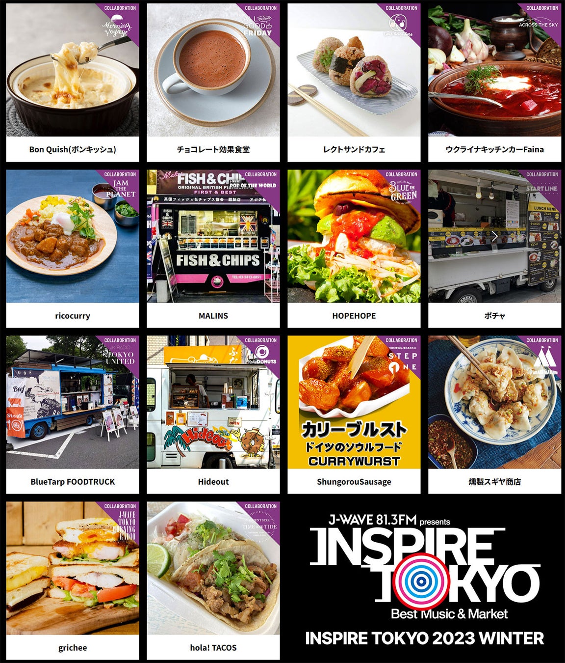 J-WAVE人気番組とのコラボフードやドリンクも! 約100店舗が出店、フリーライブも楽しめる都市型フェス「INSPIRE TOKYO 2023 WINTER」マーケット詳細が発表
