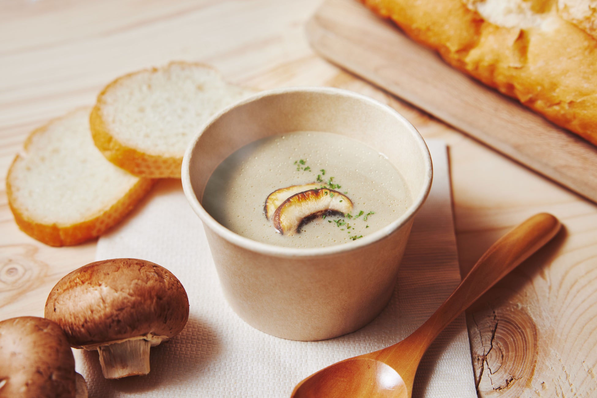 * 小麦をはじめとした農業が盛んな十勝の特徴を活かして、生産されたマッシュルームのスープ