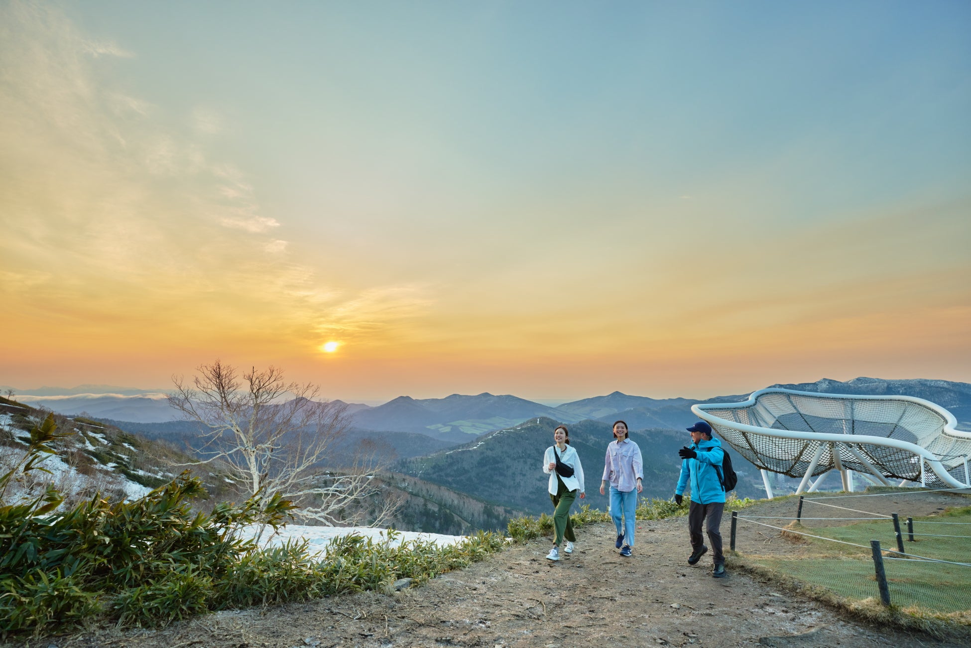 北海道の大地を感じるネイチャーワンダーリゾート「星野リゾート トマム」は、2025年9月1日〜10月14日の期間に、秋の澄んだ空気の中で、雲海や黄色に色づく絶景を楽しむ「雲海テラスサンライズウォーキング」を開催します。これは、雲海テラスに従事するガイドと一緒に、秋めく雲海テラスを散策しながら、雲海や黄葉など絶景に出会うガイドツアーです。ゴンドラ山頂駅に併設された展望デッキからの眺めだけでなく、山全体を散策してさまざまな角度から景色を楽しむことができます。