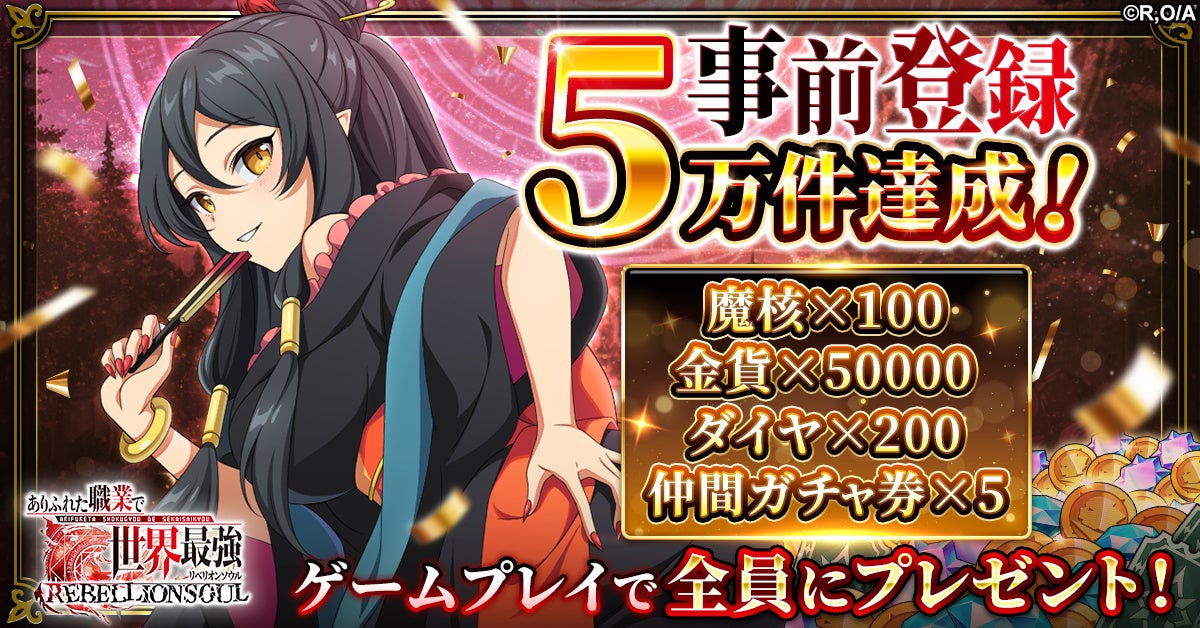 ■事前登録5万件達成!仲間ガチャ券貰える!