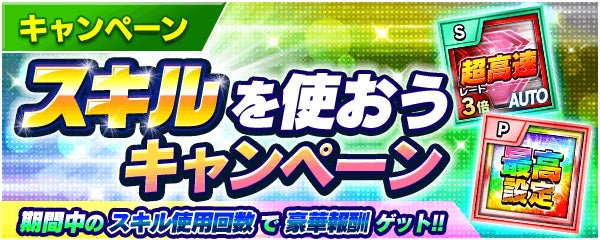 スキルを使ってミッションを達成し、【パチスロ専用】おまかせオート<超高速>レート3倍用や【パチンコ専用】最高設定などお得なアイテムをゲットしよう!