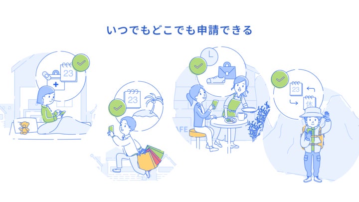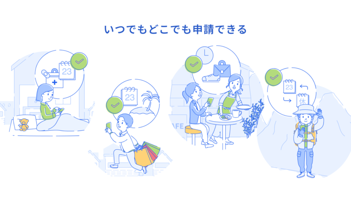 LINEのトークルーム上で操作ができるため、スマートフォンがあれば場所を選ばず申請が可能です。