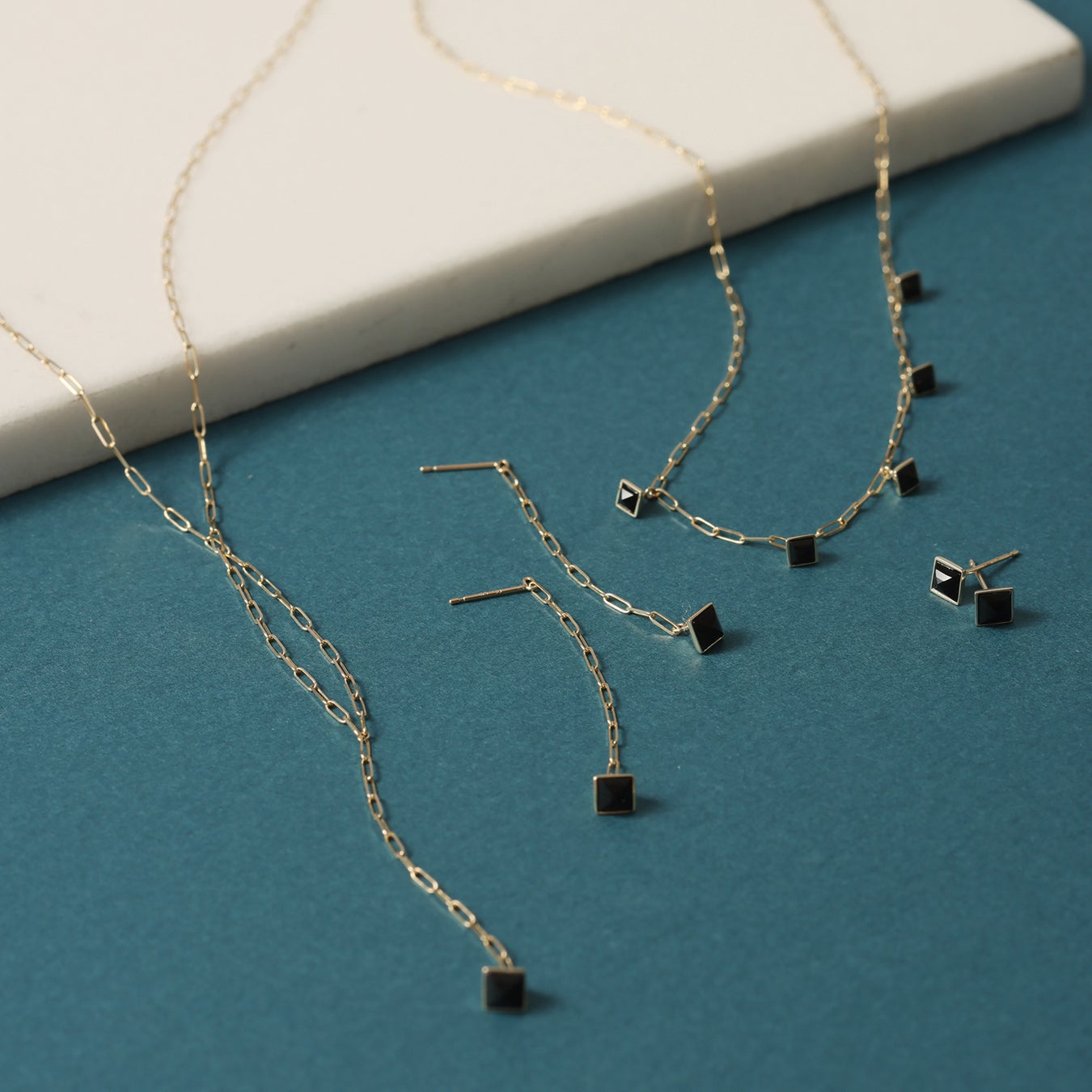 - ・オニキスピラミッドモチーフチェーンピアス K10(両耳)¥25,300税込