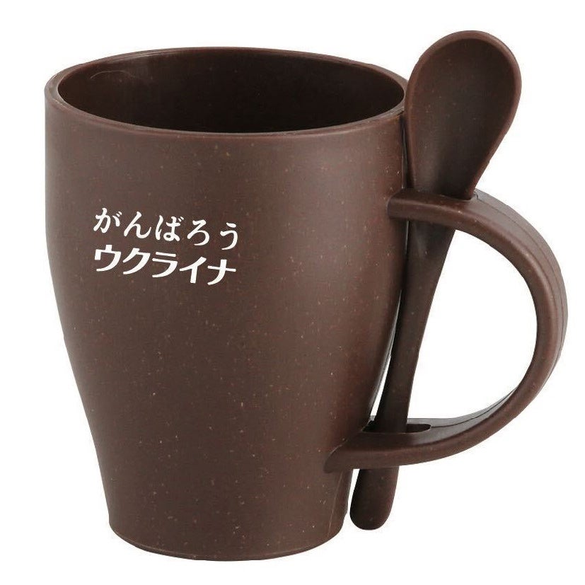 マグカップは、使用済みのコーヒー豆を再利用した商品で、私たちの持続可能な社会実現への願いを込めたものとなっています。また戦乱で破壊されたウクライナの街がいずれ再建されることを祈り、廃棄物を再生した素材の商品を選びました。