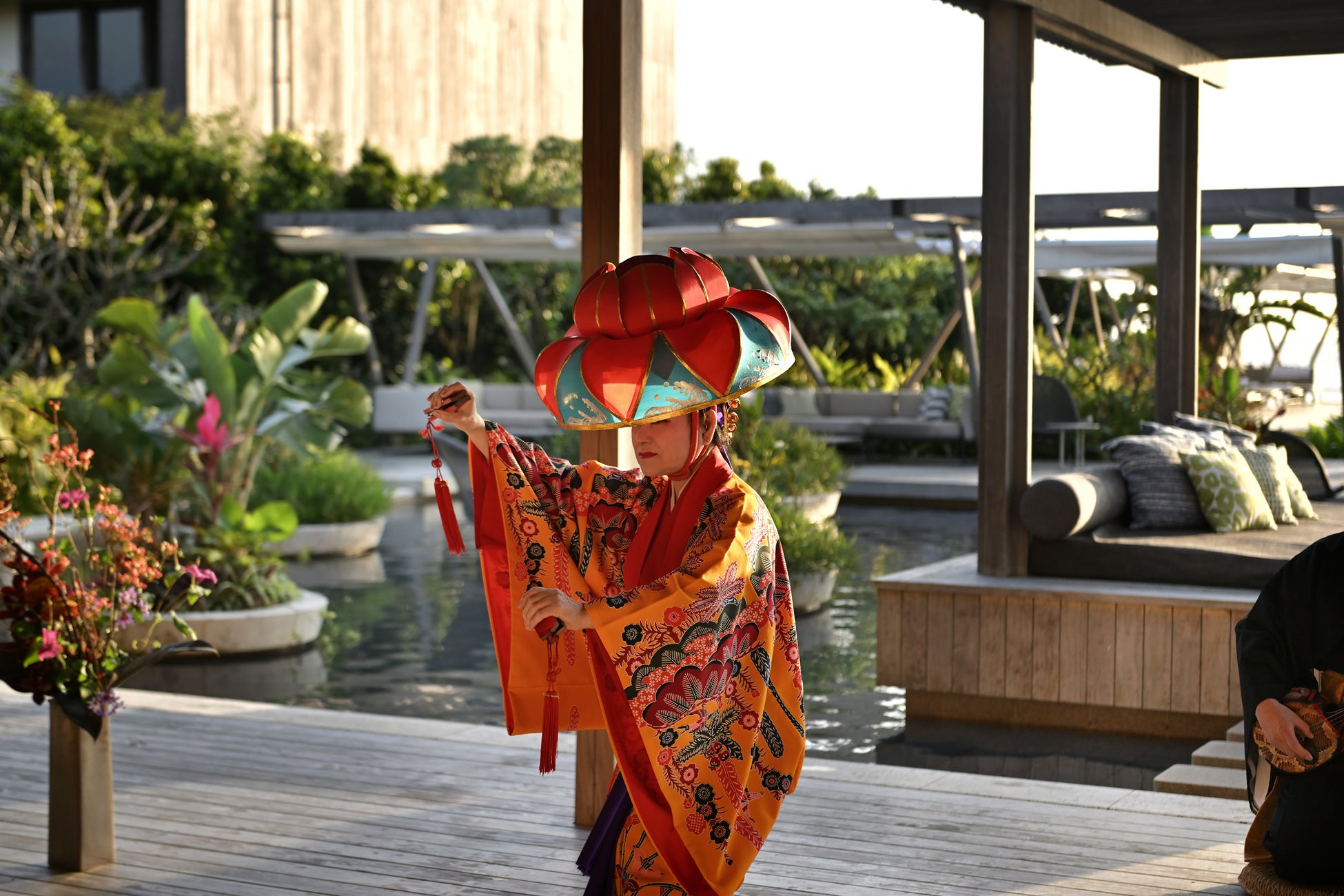 期間中は、琉球伝統芸能のルーツに迫るワークショップを開催。その日の演目にあわせて、踊りの見どころとなる歌の内容や舞台衣装、小道具について星のや沖縄のスタッフから学びます。季節の情景を演出する舞台衣装や小道具などの伝統文化に迫ることで、冊封使を歓待した芸能をより深く愉しめます。