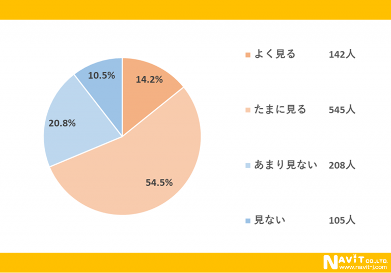 「日常的に口コミサイトを見ますか?」という質問については、「よく見る」が14.2%、「たまに見る」が54.5%という結果になり、合わせると69.7%のが口コミサイトを見ていることが分かりました。