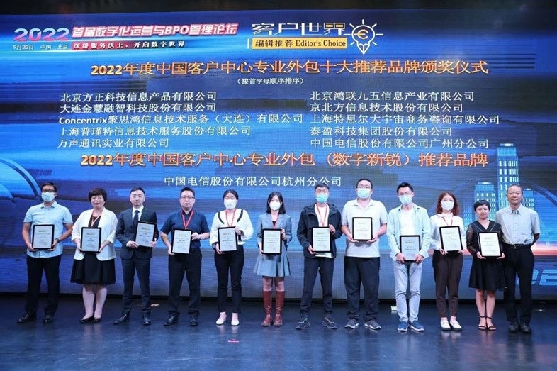 トランスコスモス株式会社(代表取締役共同社長:石見浩一、牟田正明)の100%子会社である上海特思尓大宇宙商務咨詢有限公司(本社:中国上海市、CEO:山下栄二郎、以下、トランスコスモスチャイナ)は、カスタマーケア&マネジメント ワールドグループ(以下、CCMWorld Group、本社:中国北京、CEO:趙渓、サイト:http://www.ccmw.net/)が2022年9月22日に開催した「第1回デジタルオペレーションとBPOマネジメントフォーラム」において「2022年度中国カスタマーセンター・プロフェッショナルアウトソーシングの10大オススメブランド」に選出されました。