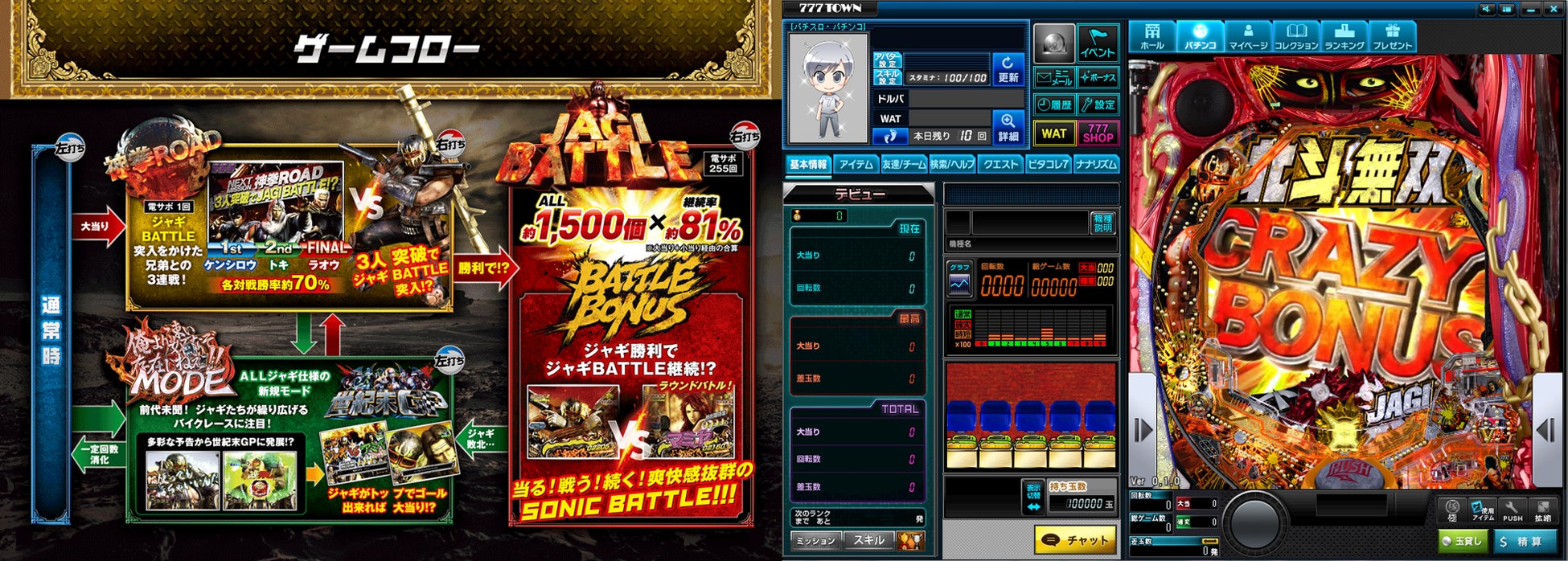 「P真・北斗無双 第3章 ジャギの逆襲」がぱちんこ・パチスロオンラインゲーム「777TOWN.net」に登場!