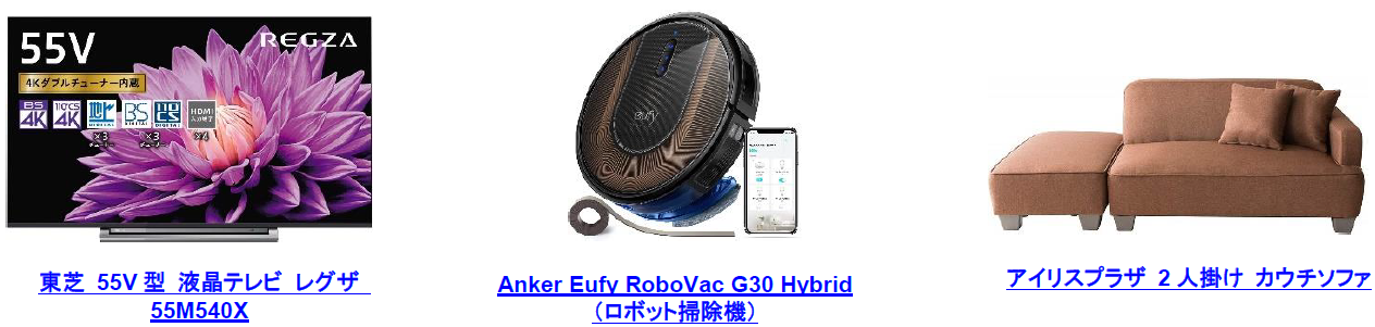 ● 「大型家電・家具 設置回収サービス」:Amazon上で販売される冷蔵庫、洗濯機、テレビ、家具の一部に適用される組み立て・設置・家電リサイクル・大型家具引き取りなどのサービスです。