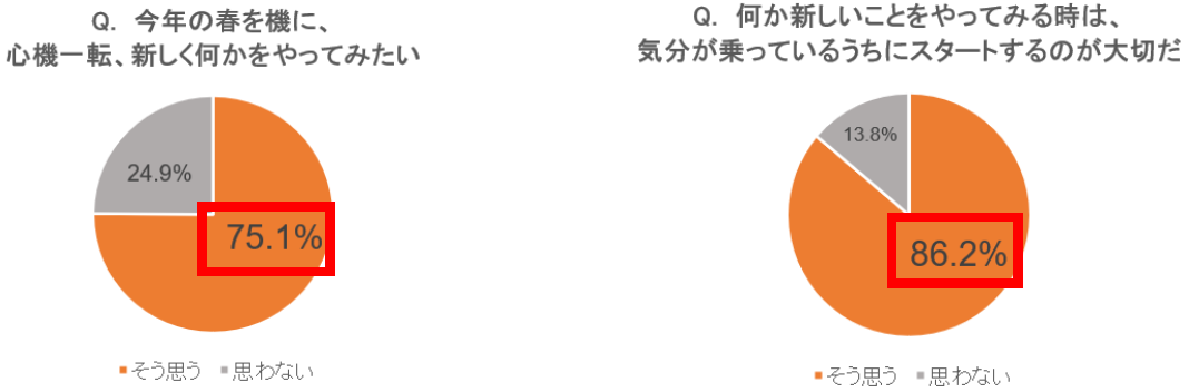 • 2022年の新生活に関する意識調査で、75%の人が「春は、心機一転、新しく何かをやってみたい」と回答