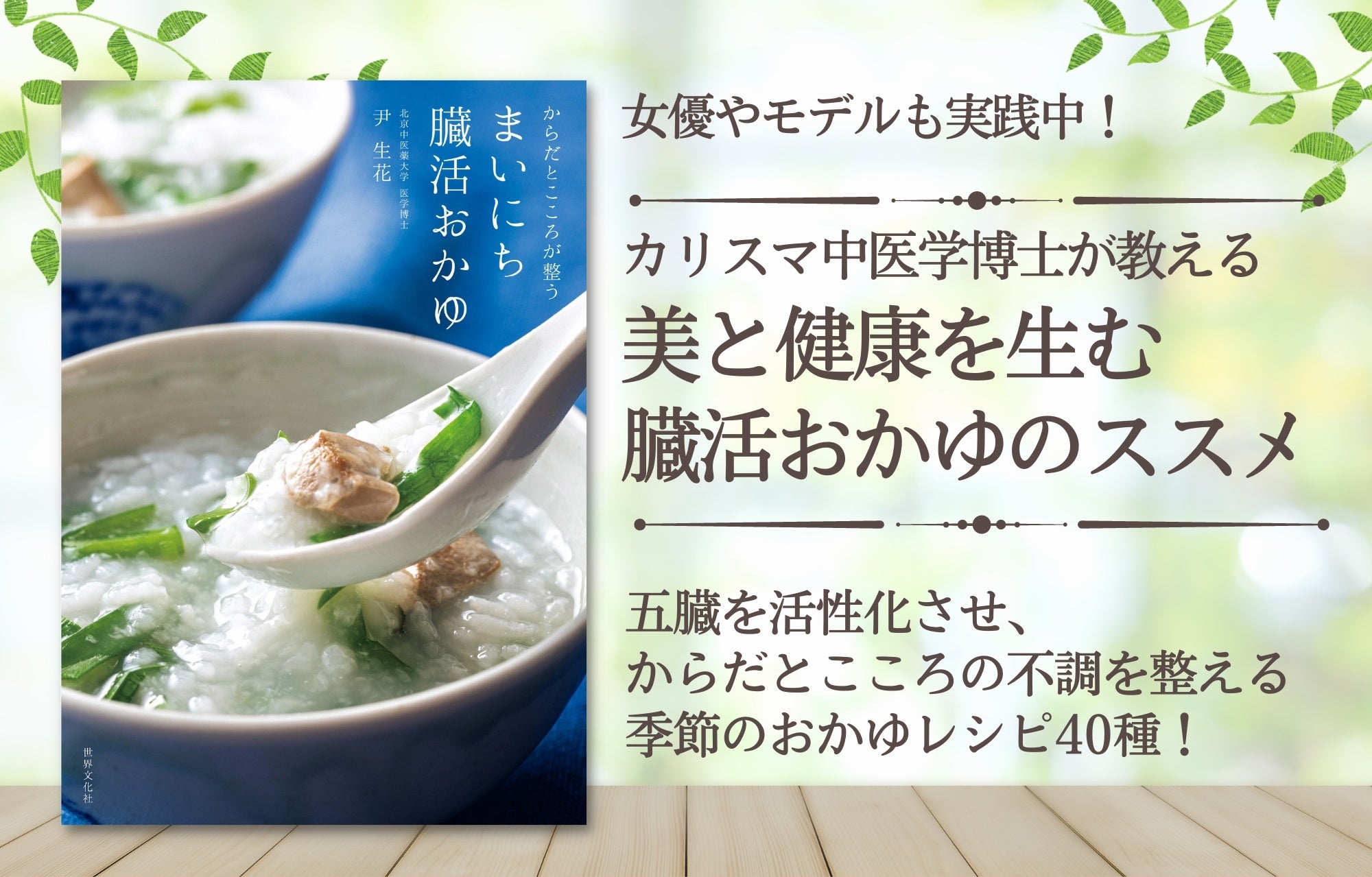 そんな尹先生が、「美と健康と若さ」を手に入れるのに欠かせないと提唱するのが「五臓の活性化」。すなわち「臓活(ぞうかつ)」です。中医学における五臓とは、「肝(かん)・心(しん)・脾(ひ)・肺(はい)・腎(じん)」。この五臓を活性化させる臓活には、筋トレや呼吸法など様々なアプローチがありますが、本書がすすめるのは毎日の「食事」による臓活法です。先生自身が毎朝食べているという「臓活おかゆ」を生活に取り入れて、からだを内側から美しく、健やかに、若々しく保つ方法を伝授します!