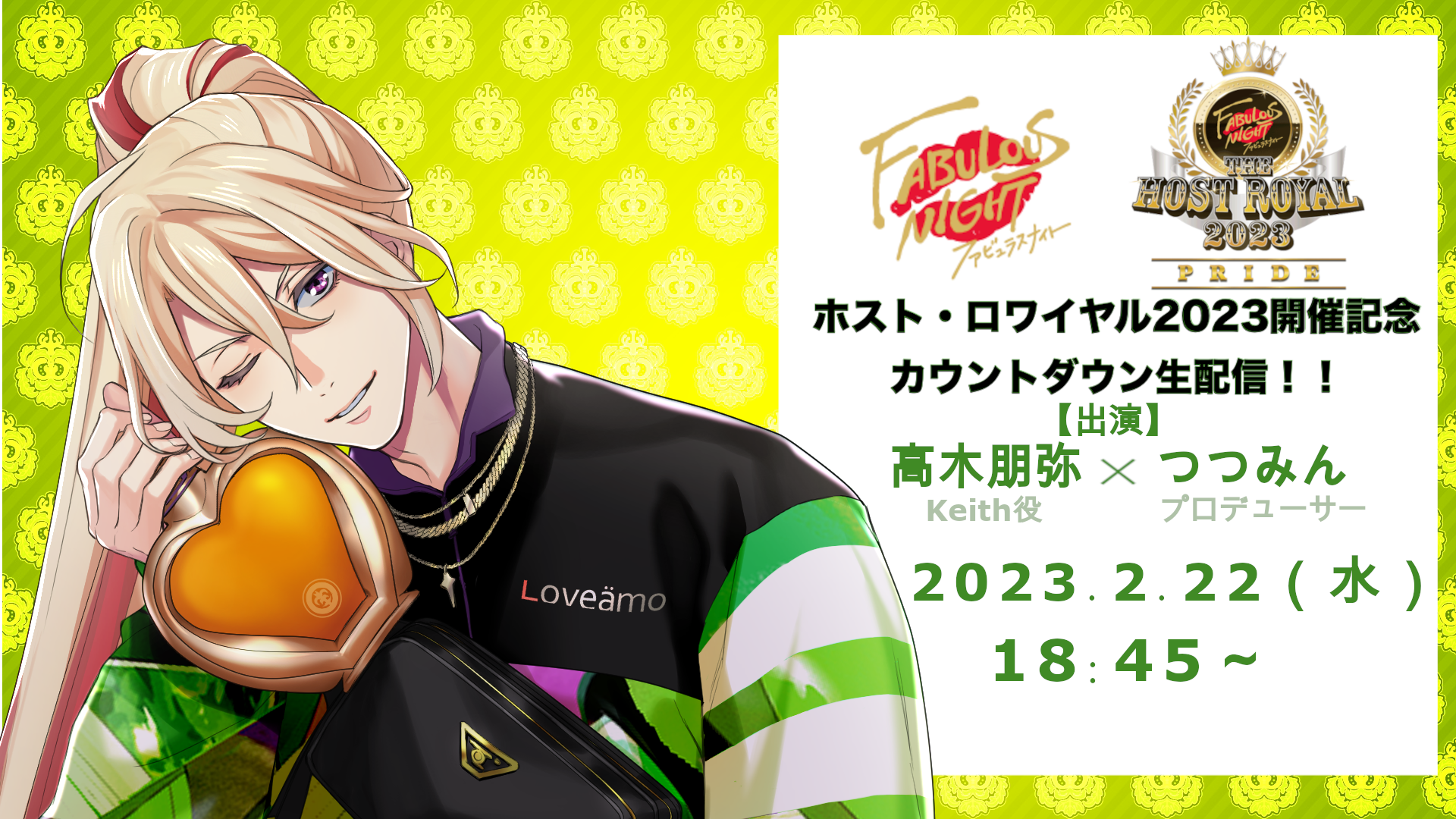そんな一大プロジェクトのスタートを『ファビュラスナイト』プロデューサーのつつみんと、Keith役の高木朋弥さんがカウントダウン生配信で盛り上げます!
