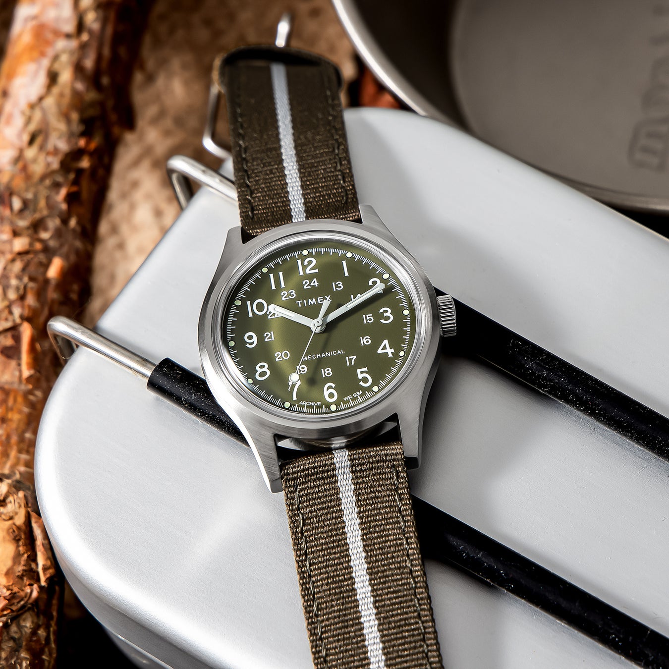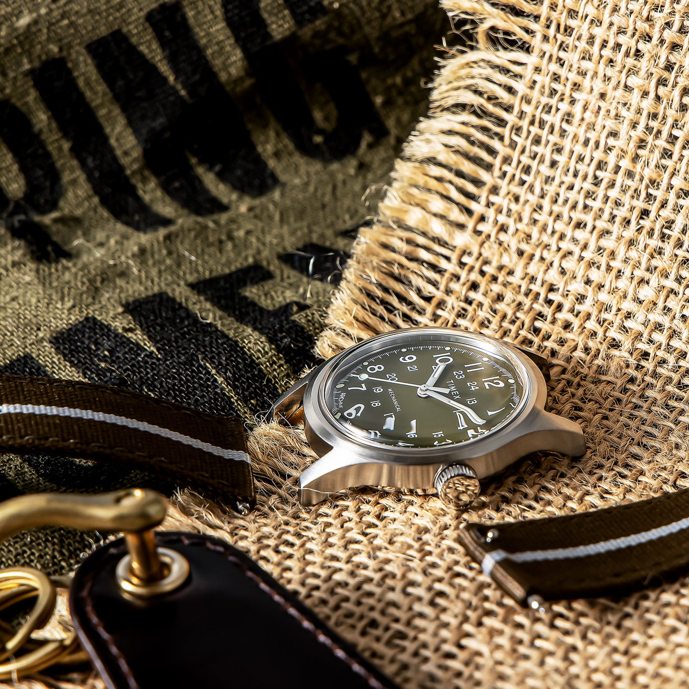 『キャンパー』の出自を彷彿とさせるミリタリーグリーンを基調にした『MK1 メカニカル』は、タイメックス社のクリエイティブ・ディレクターである ジョルジオ・ガリ によってデザインされました。