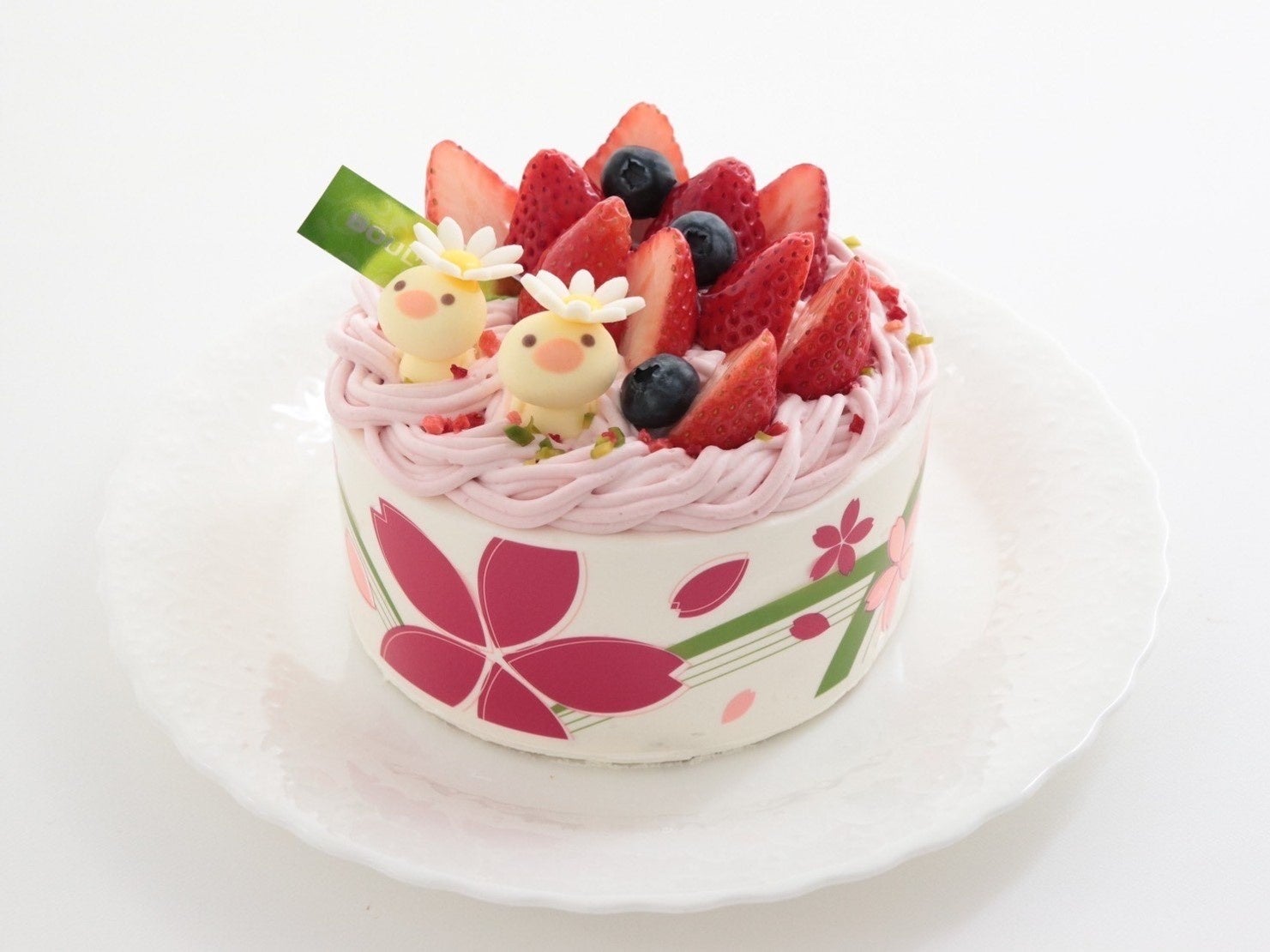 苺ショートに苺クリームをしぼった鳥の巣デザインのケーキです。