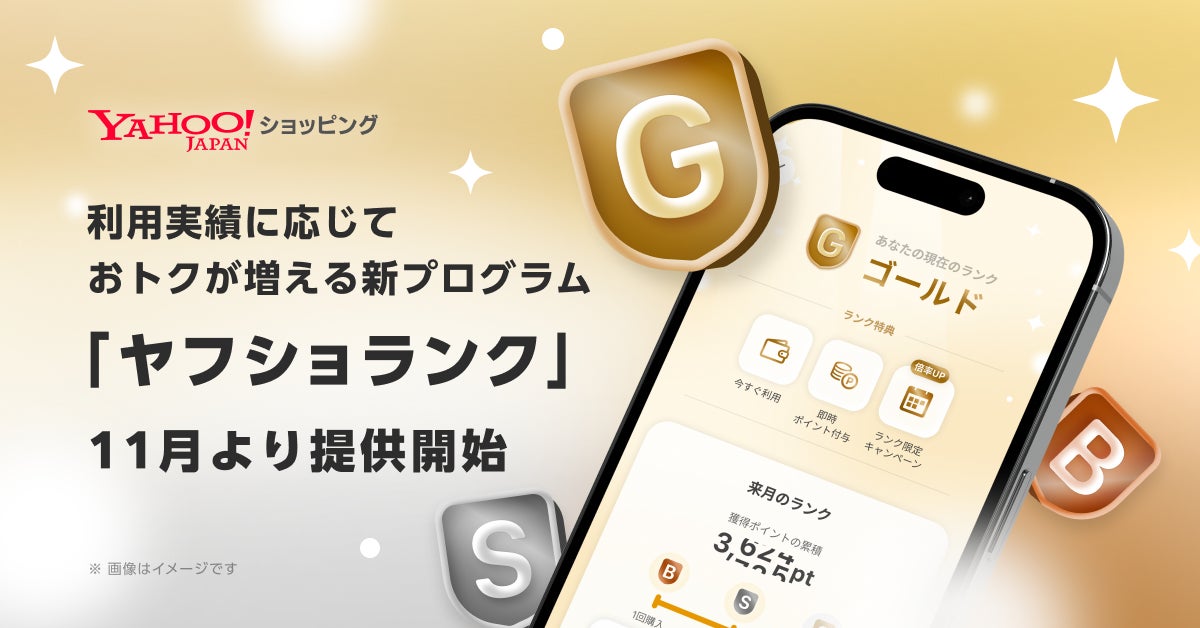 LINEヤフー株式会社(以下、LINEヤフー)が運営する「Yahoo!ショッピング」は、2025年11月4日(火)より、お買い物状況と獲得ポイントに応じて特典が変わる会員ランク制度「ヤフショランク」の提供を開始します。あわせて、購入と同時にポイントが獲得できる「即時ポイント付与」機能の導入や、ランク別の限定キャンペーン「ヤフショ感謝デー」の開催などを通じて、より魅力的で継続的な買い物体験の提供を目指します。