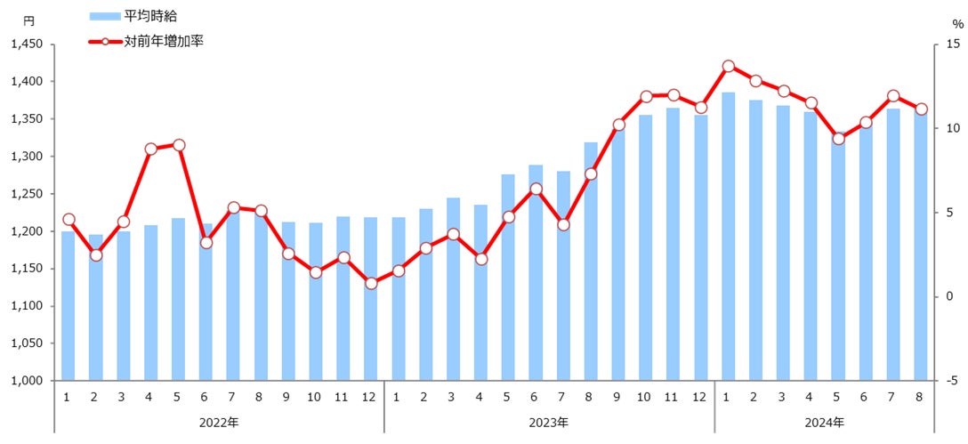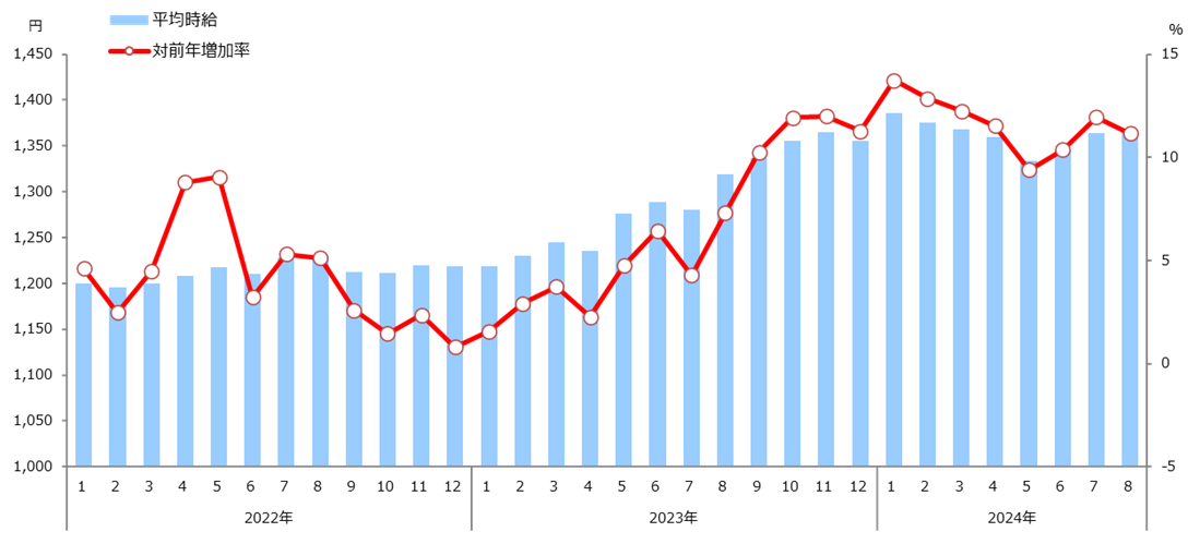1.職種別平均時給(2024年8月)