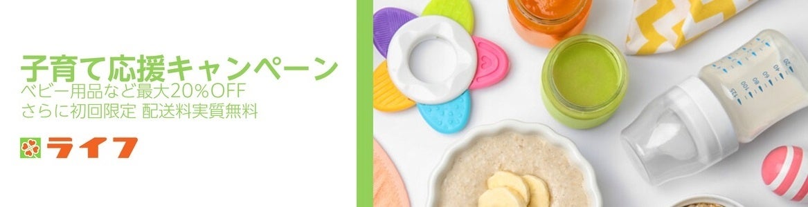 Amazon上のライフネットスーパーにおいて、ベビーフードやおむつなどのベビー用品をはじめ、毎日のお弁当作りに助かる冷凍食品など、子育てをサポートする商品が最大20%OFFになる割引セールを実施中です。