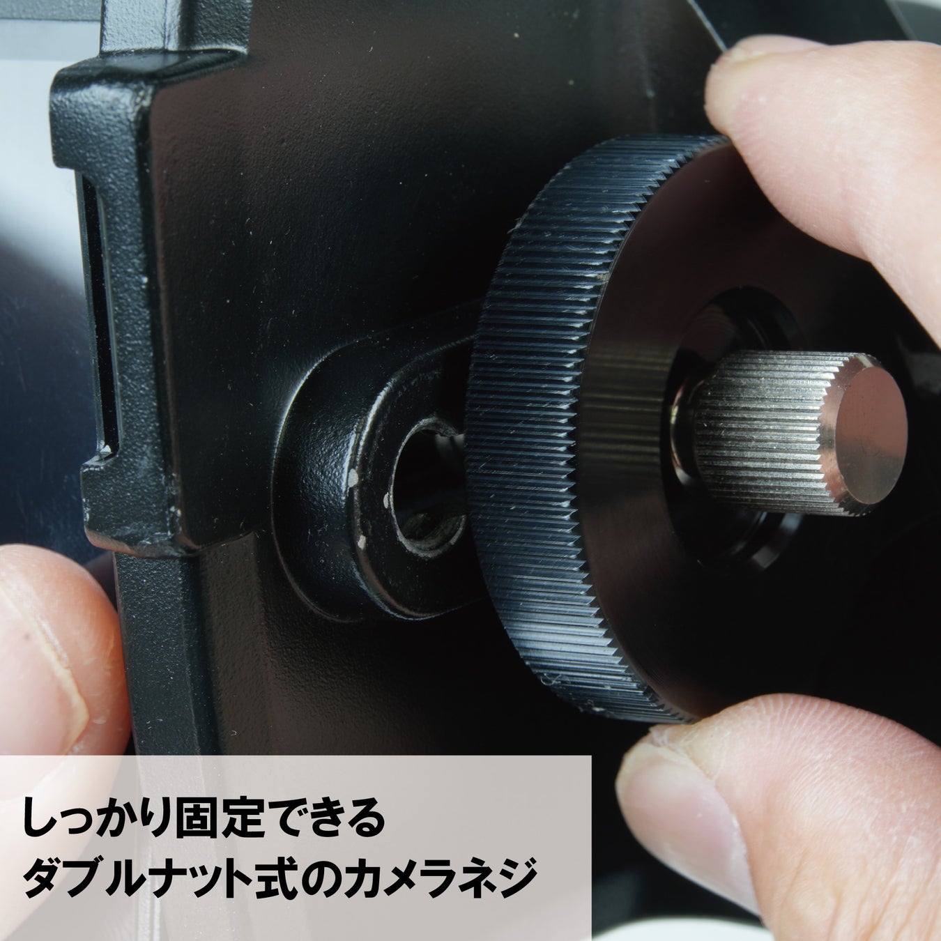 ダブルナット式により、カメラねじをよりしっかりと固定ができます。