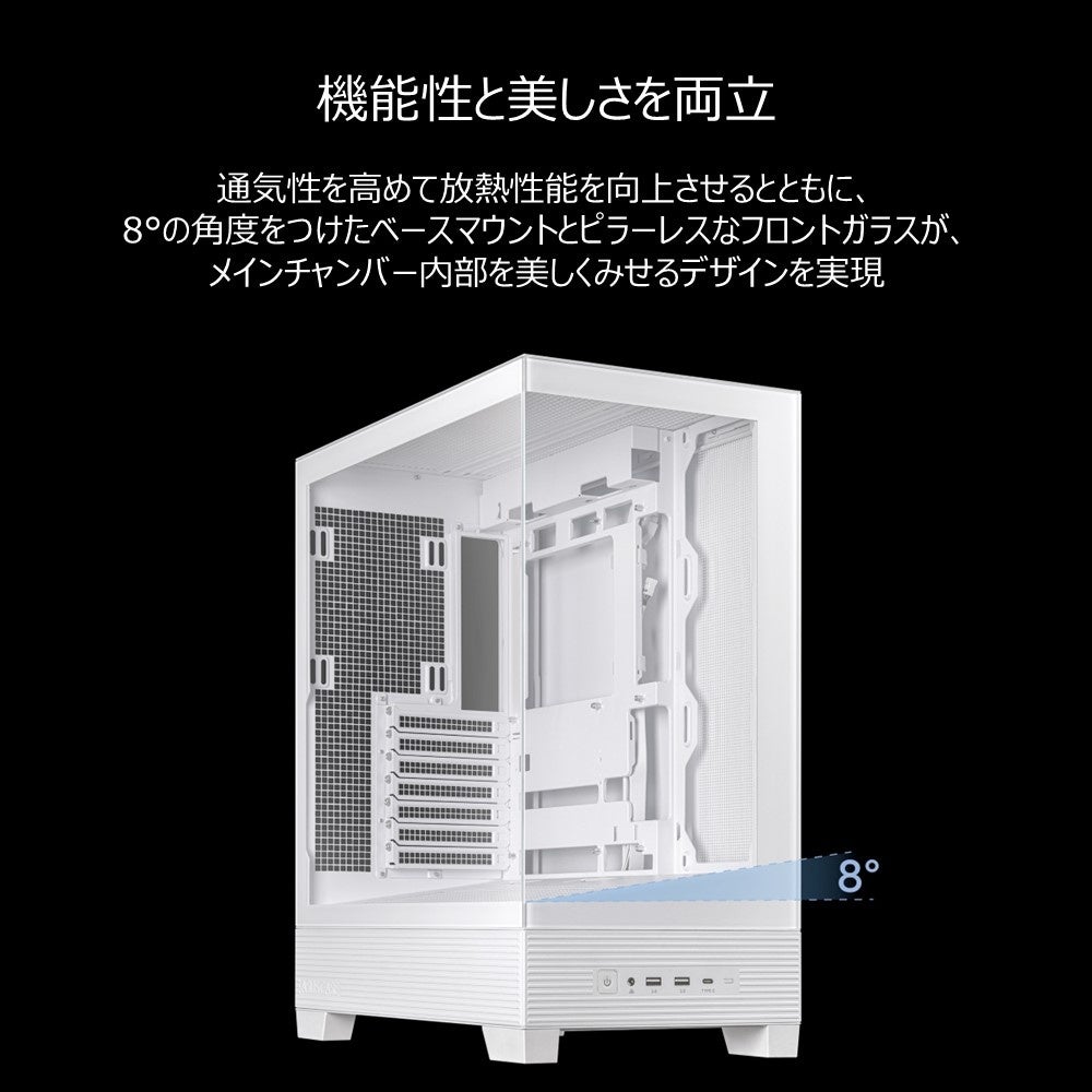 ASUS ボトムに機能性と美しさを兼ね備えた8度のゴールデンアングルを採用したピラーレスPCケース「ASUS A31 Case」ブラックとホワイトの2色を発表