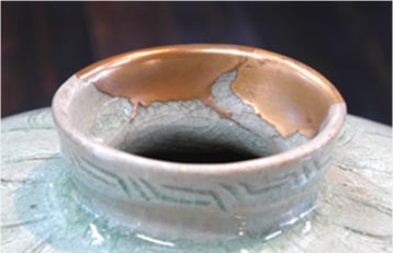 破損した陶磁器を漆でつなぎ合わせて補修する昔ながらの技法で、補修した部分を金で装飾します。