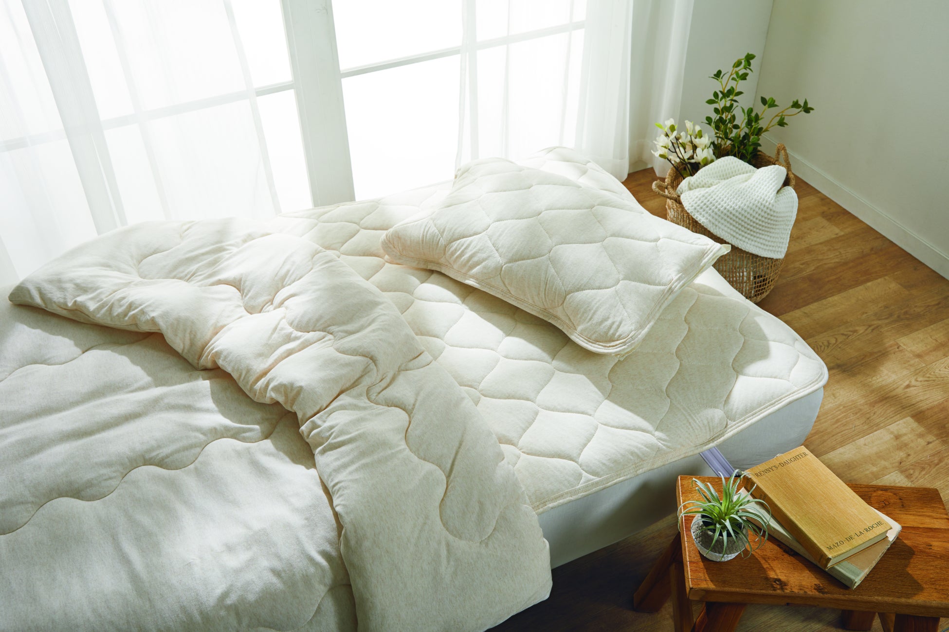春から夏にかけて汗をかきやすい季節には、天然素材ならではのやさしい肌ざわりが心地よく、睡眠をサポートします。また吸水性に優れたオーガニックコットン混素材で、汗ばむ時期はもちろん、一年を通して心地よくお使いいただけます。