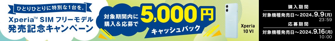 「Xperia 10 VI」を購入し、キャンペーンに応募すると、5,000円キャッシュバック