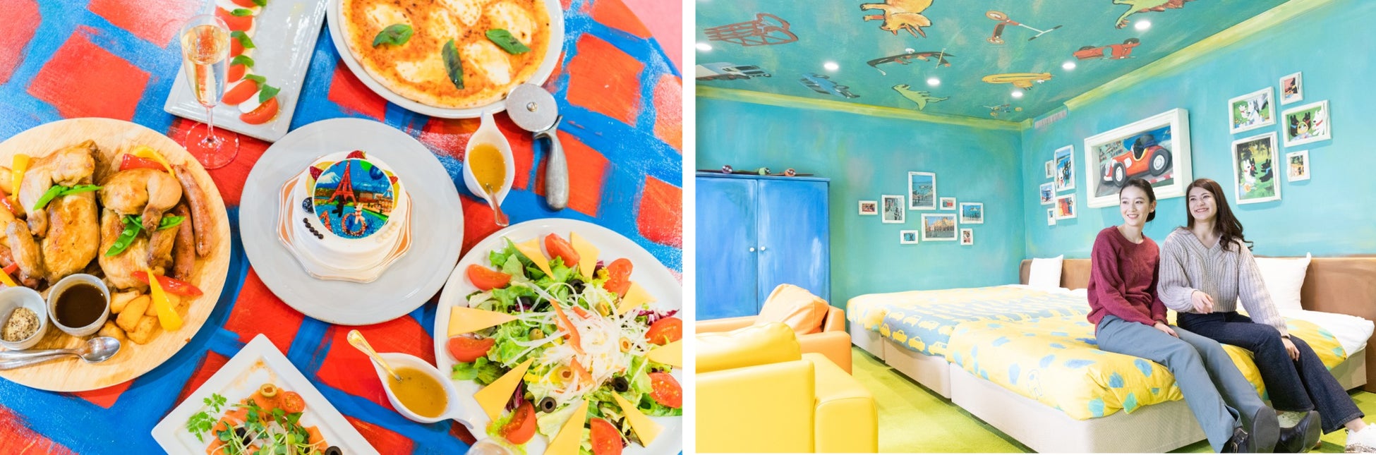 リサとガスパール タウン内では、10周年原画をイメージした装飾や限定フードの販売、オリジナルグッズの販売などファン必見のイベント盛りだくさんで展開しており、新たな周年企画としてハイランドリゾート ホテル&スパにあるリサとガスパールルームでも宿泊者限定で可愛らしい空間でホテルシェフの本格ディナーを楽しめる女子会プランを販売いたします。
