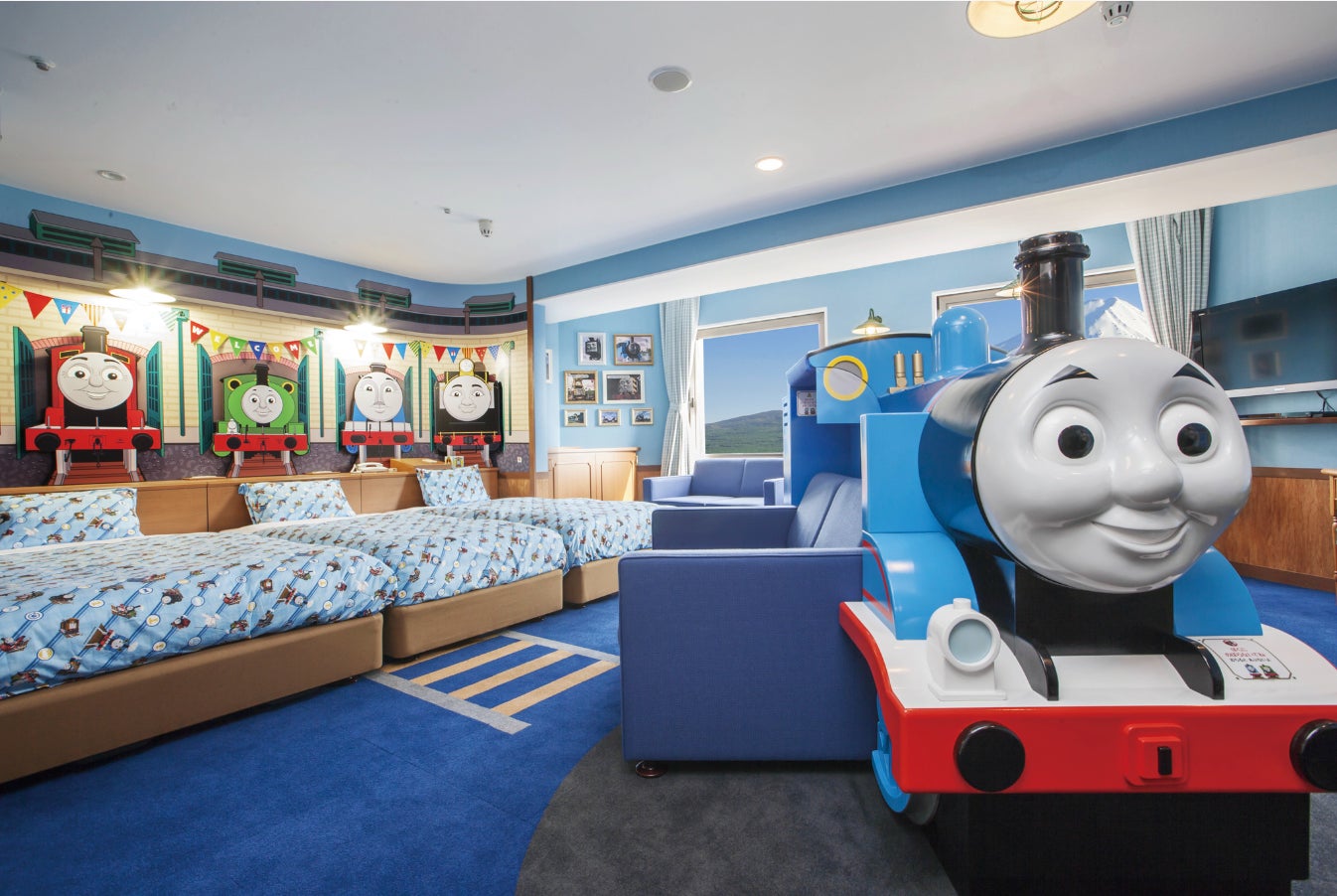 “きかんしゃトーマス”の世界観を再現した「トーマスルーム」は、1998年に1室目がオープンして以来、たくさんのトーマスファンのご家族にご利用いただいてきた人気のキャラクタールームです。2022年7月16日(土)には新たに、「トーマスとアニーとクララベルのお部屋」、「トーマスとニアとナップフォード駅のお部屋」が登場し、合計10室ととなりました。