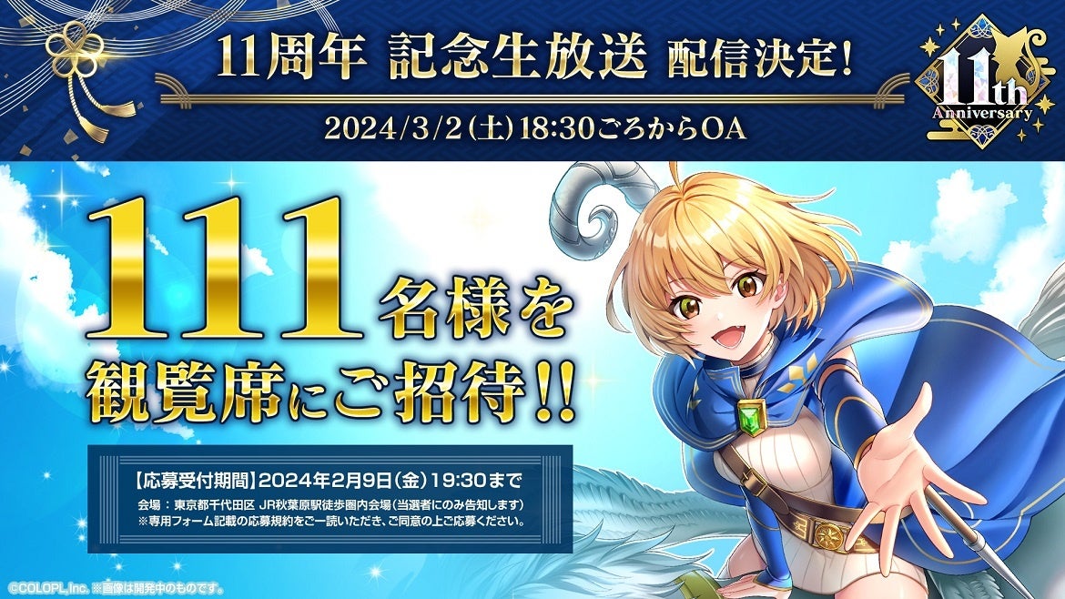 11周年記念生放送が配信決定!抽選で111名様を観覧席にご招待いたします。
