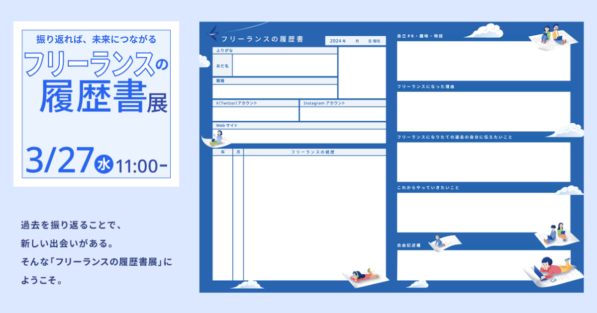 開催日時:2024年3月27日(水)18:00〜22:00(※「フリーランスの履歴書展」のみ11:00~22:00)