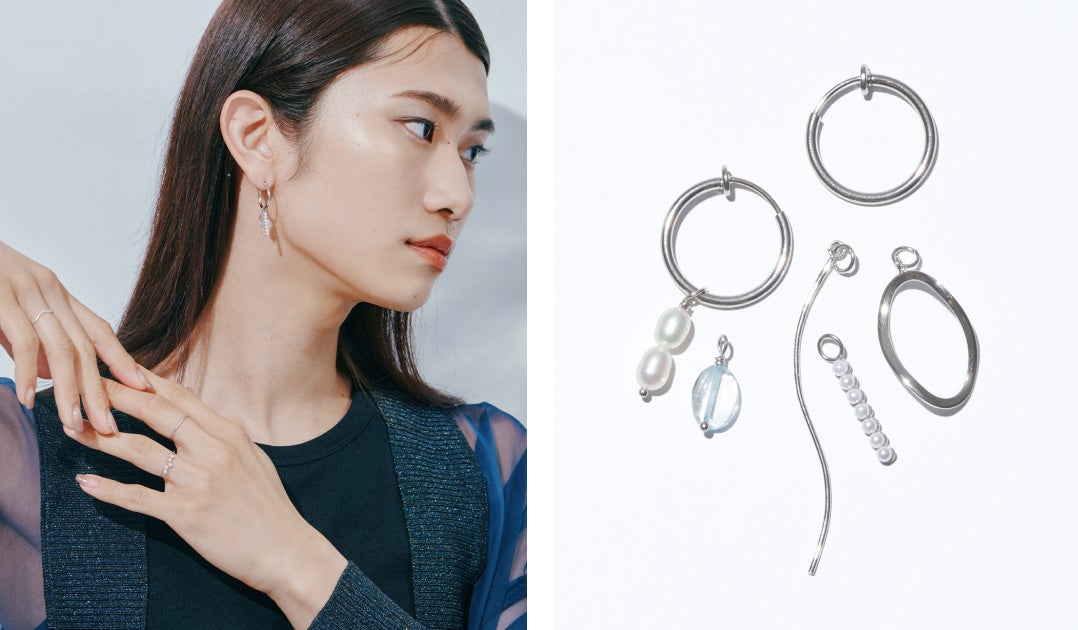 チャームを外してシンプルに、片耳にたくさんチャームをつけてアクセントに、多様な使い方で毎日の気分に寄り添います。