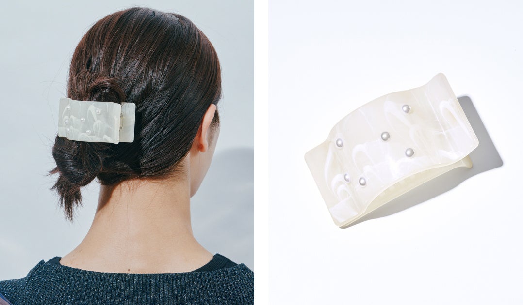 パールをあしらった波間のような有機的なシルエットのヘアクリップ。