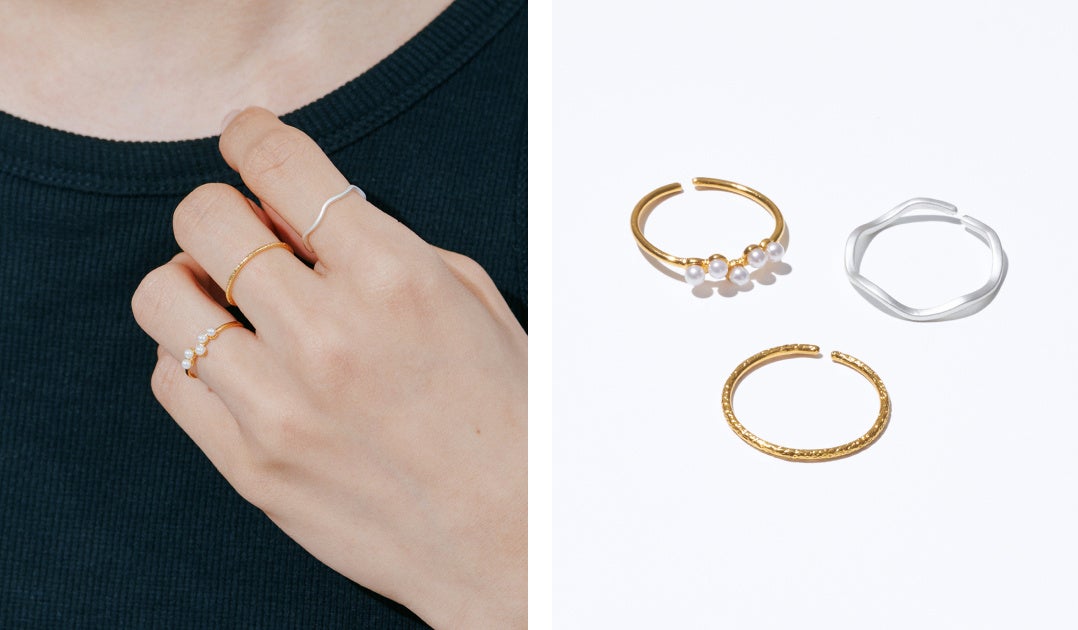 同じ指に重ねて、異なる指につけて、1本だけアクセントにetc...