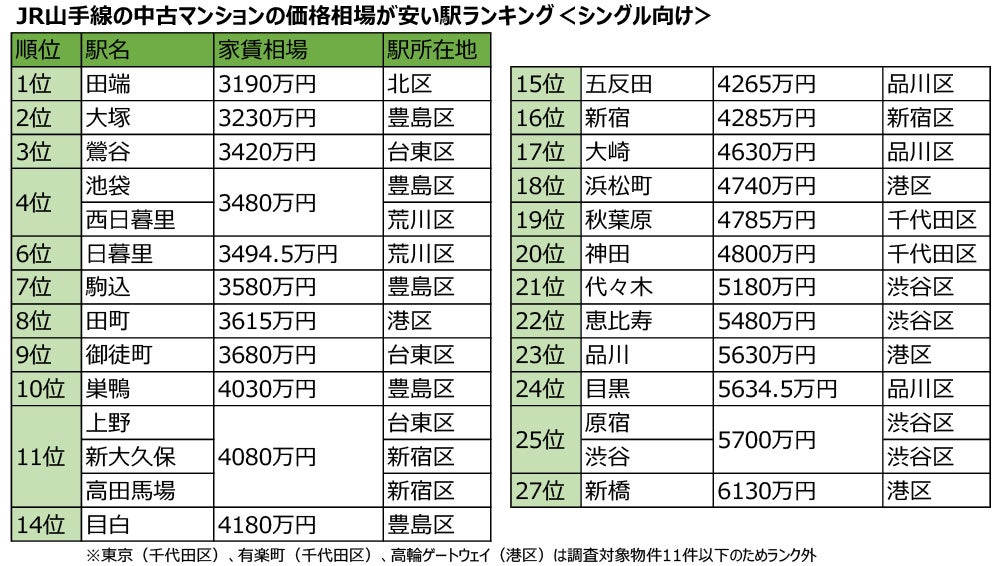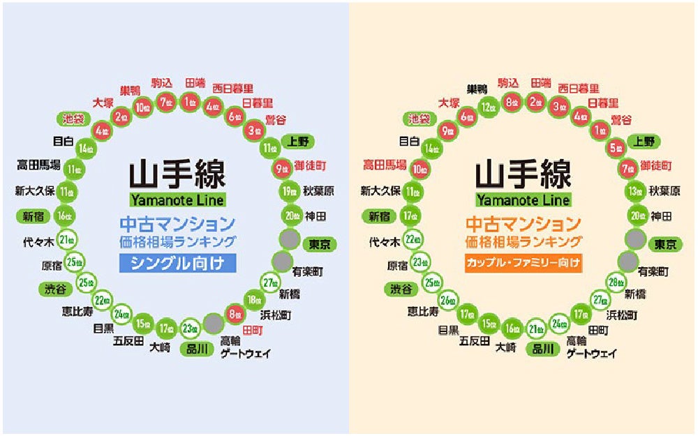 JR山手線の中古マンションの価格相場が安い駅ランキング2022年版発表!シングル向け1位は「田端」、カップル・ファミリー向け1位は「鶯谷」
