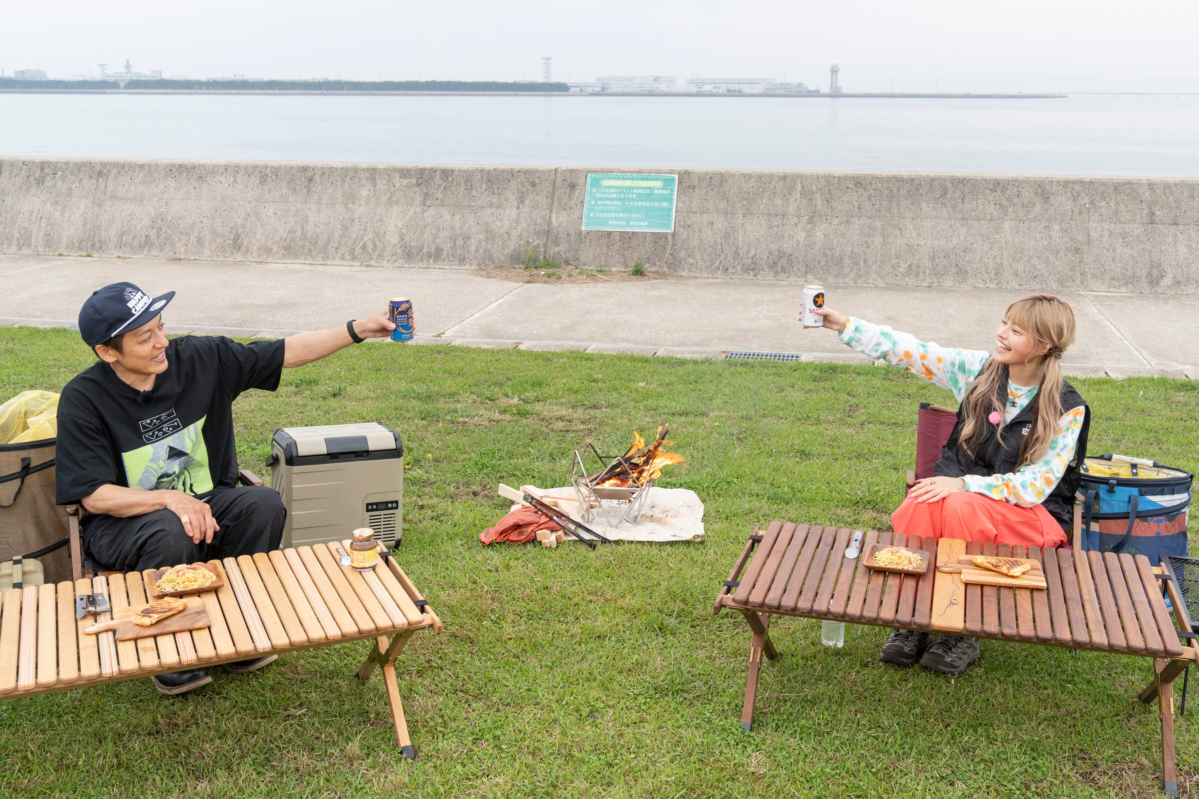 ギャルキャンパーを目指すアンジェリカはキャンプの“三種の神器”と言われる、テーブル、チェア、焚き火台を求めて本気で買い物する流れに。お気に入りのチェアを見つけると、なぜか突然村田とチェアを使った即興コントを披露し始めた。果たしてそのクオリティは?