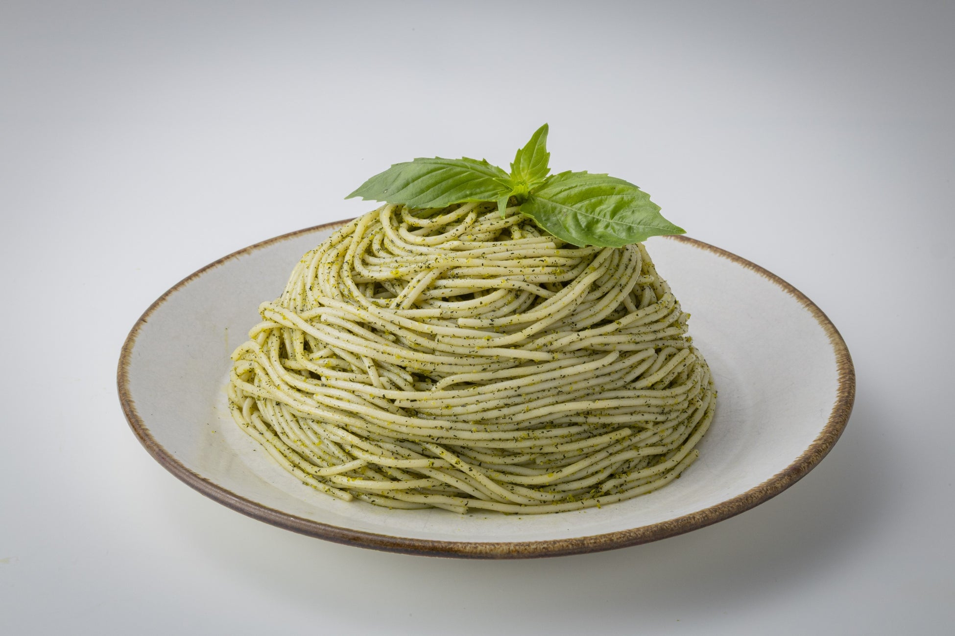 共同開発にあたり、当社から「スパイス・ハーブの力で、ケール本来のおいしさを感じられるパスタソースにしてほしい」と依頼し、ケールの青臭さを低減しつつ、旨みを最大限引き出すことに特にこだわりました。結果、“深蒸しバジル”の深い旨みと香り高さを前に立たせながら、アーモンドパウダーの香ばしい風味や甘みでケールの青臭さを低減させています。さらに、オールスパイスやナツメグ、クローブ、カルダモンなどのスパイスを組み合わせることで、ケールの旨みを引き出し、“深蒸しバジル”とケール、両方の素材のおいしさを味わえるパスタソースに仕上げることができました。
