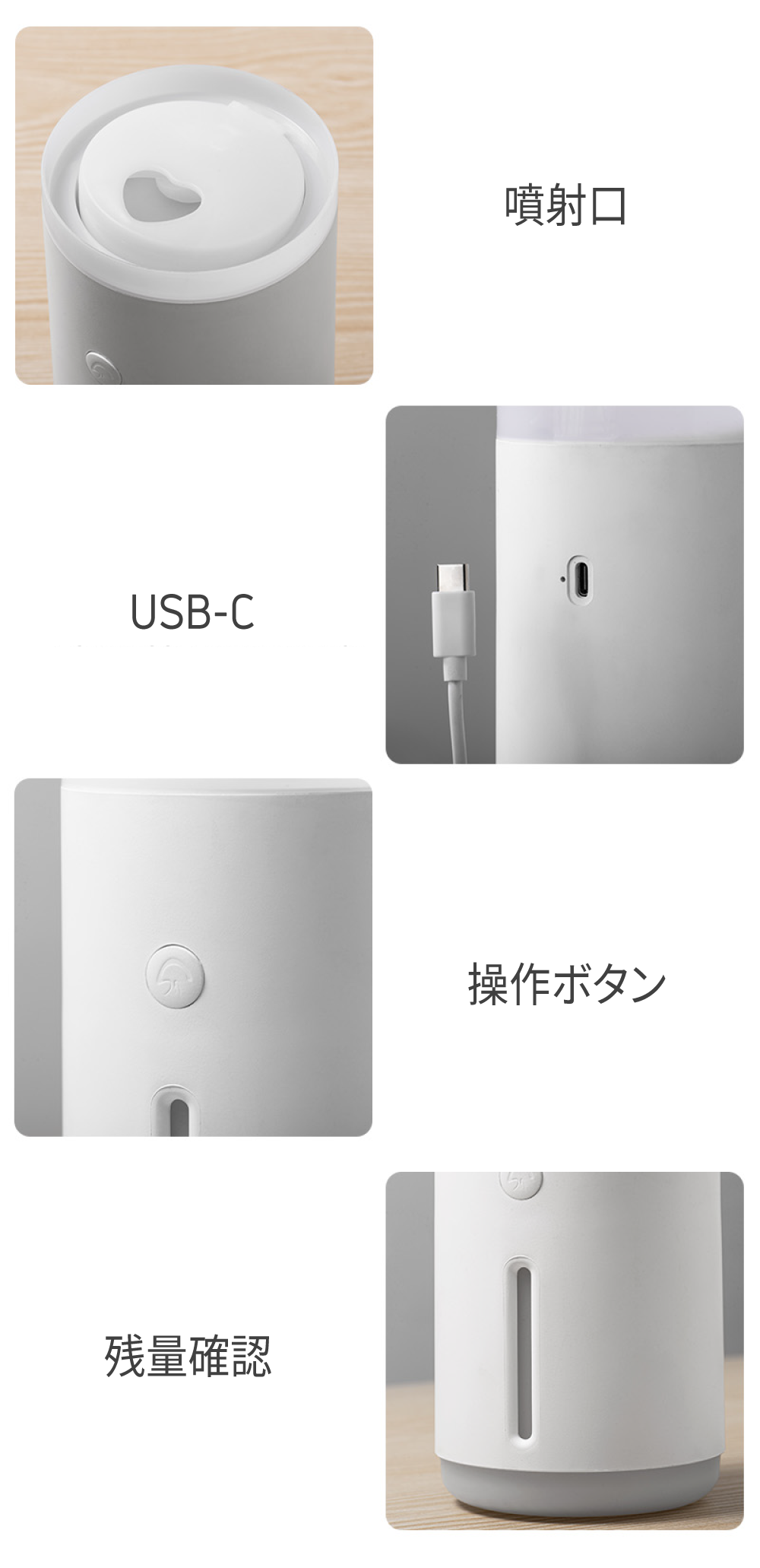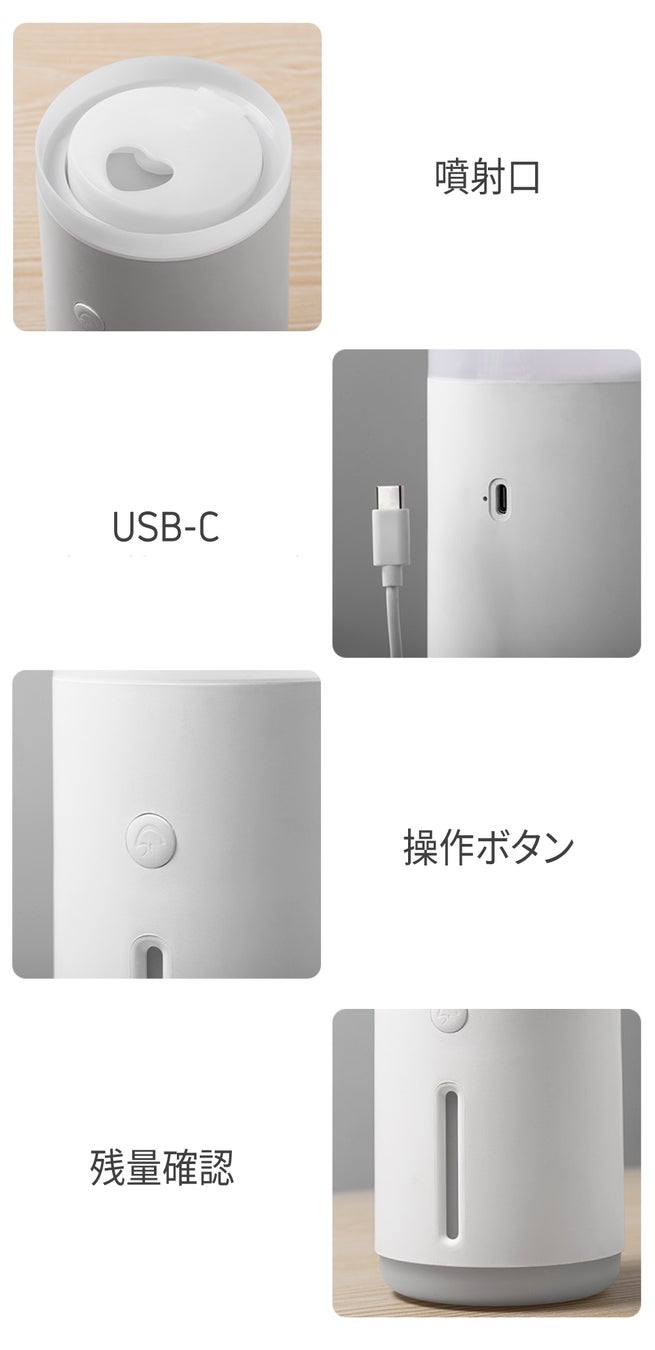 肌や喉を乾燥から守る/小型/大容量/USB-C充電式