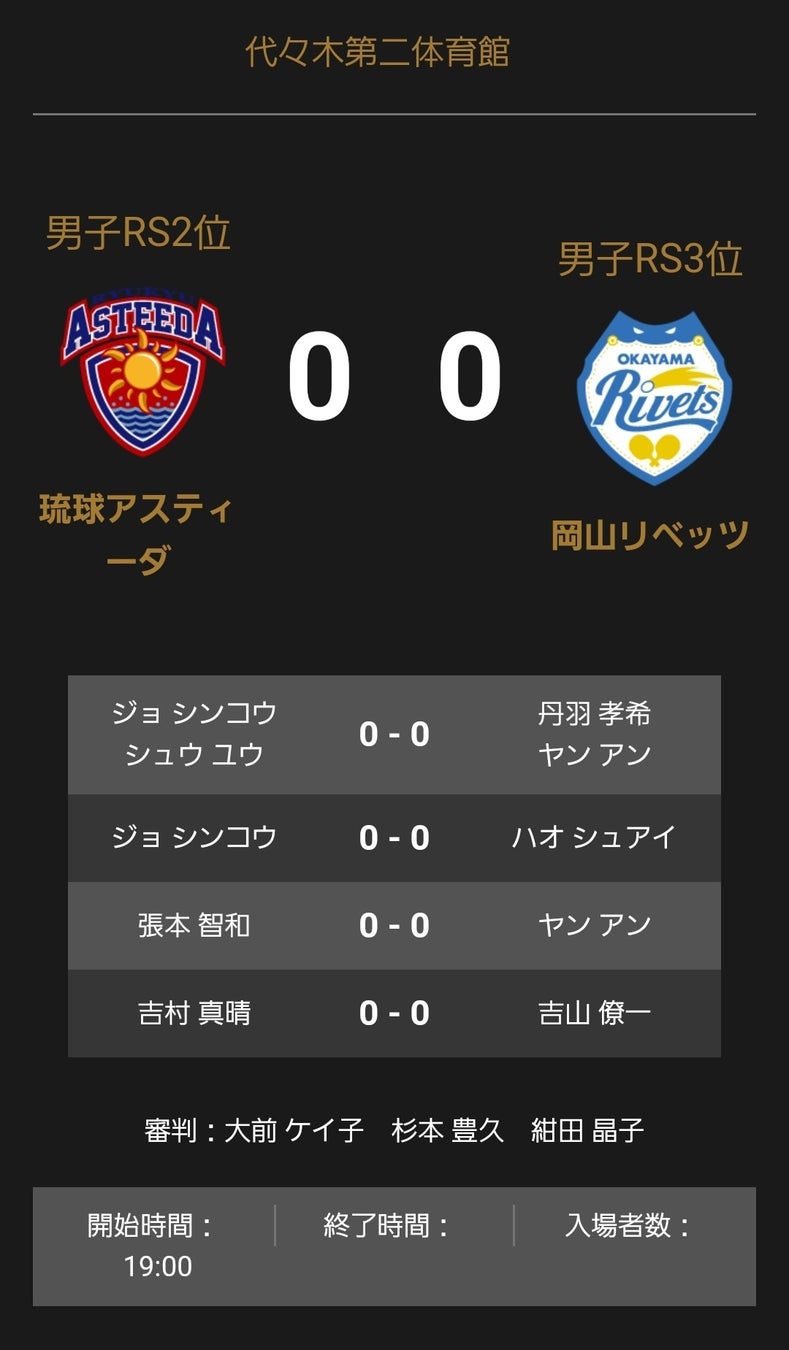 ノジマTリーグ 2023-2024シーズン 公式戦 3月22日開催 琉球アスティーダ vs 岡山リベッツ 対戦オーダー発表