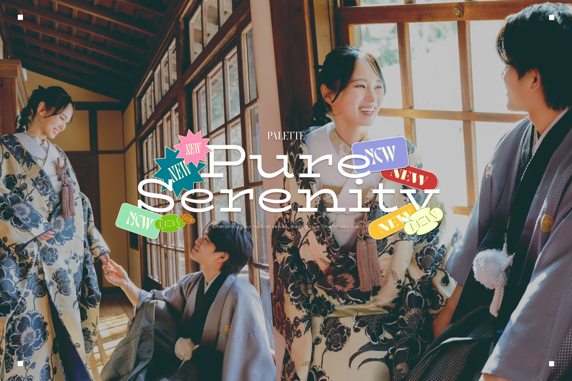 今回の新ビジュアルのテーマは、澄み渡るような穏やかさを意味する「Pure Serenity」。 和装という伝統的なスタイルでありながら、形式にとらわれすぎない、ふたり本来の空気感を大切に撮影を行いました。