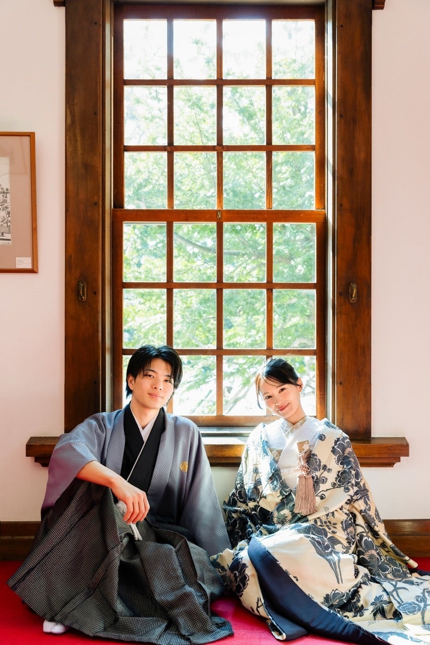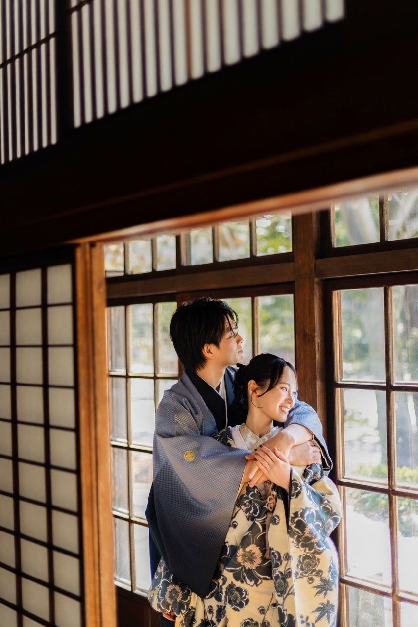 和装の凛とした美しさと、窓から差し込む自然光が織りなす「柔らかさ」を表現。ふとした瞬間の笑顔や視線の交わりなど、日常の延長線上にあるような「あたたかみ」を感じさせるカットが特徴です。