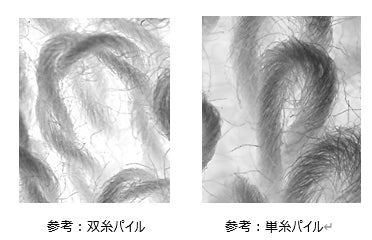 タオルはパイルに1本の糸(単糸)を使用することが多い中、今回発売するタオルは繊維の長い綿(超長綿)を2本使いの糸(双糸)に紡績し、パイル糸に使うことで、ふっくらとボリュームがあり、毛羽立ちにくく、たっぷり吸水する「ふっくらパイルタオル」ができあがりました。