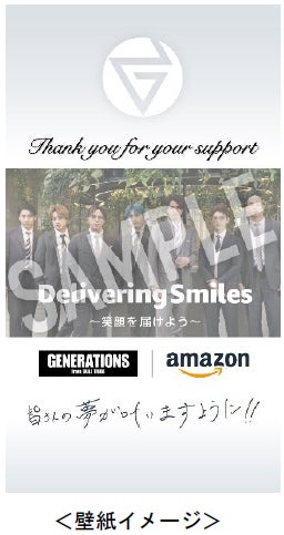Amazonは、GENERATIONS from EXILE TRIBEの協力のもと制作し、オンライン配信している「GENERATIONSチャリティライブ presented by Amazon Delivering Smiles」において、3月3日(木)23:59までに同コードをご購入いただき、子どもたちへの支援に参加いただいたお客様全員に、ライブ内でGENERATIONSのメンバーが書いたメッセージを添えたオリジナル壁紙をプレゼントする企画を実施します。
